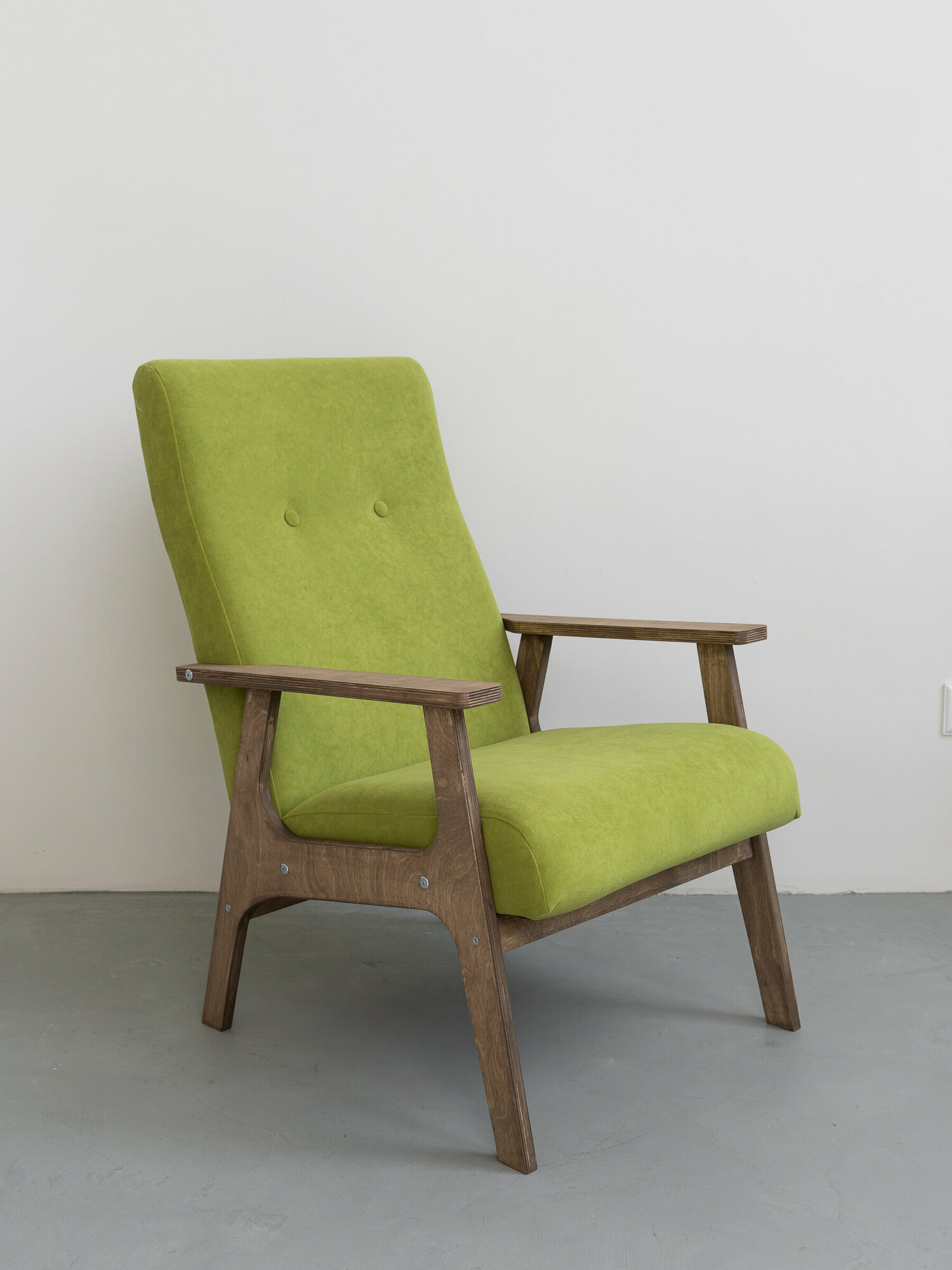 Комплект Чилл ZASIDELIS кресло с с пуфом для ног, велюр, салатовый, коричневое масло 59 х 78 х 94 см