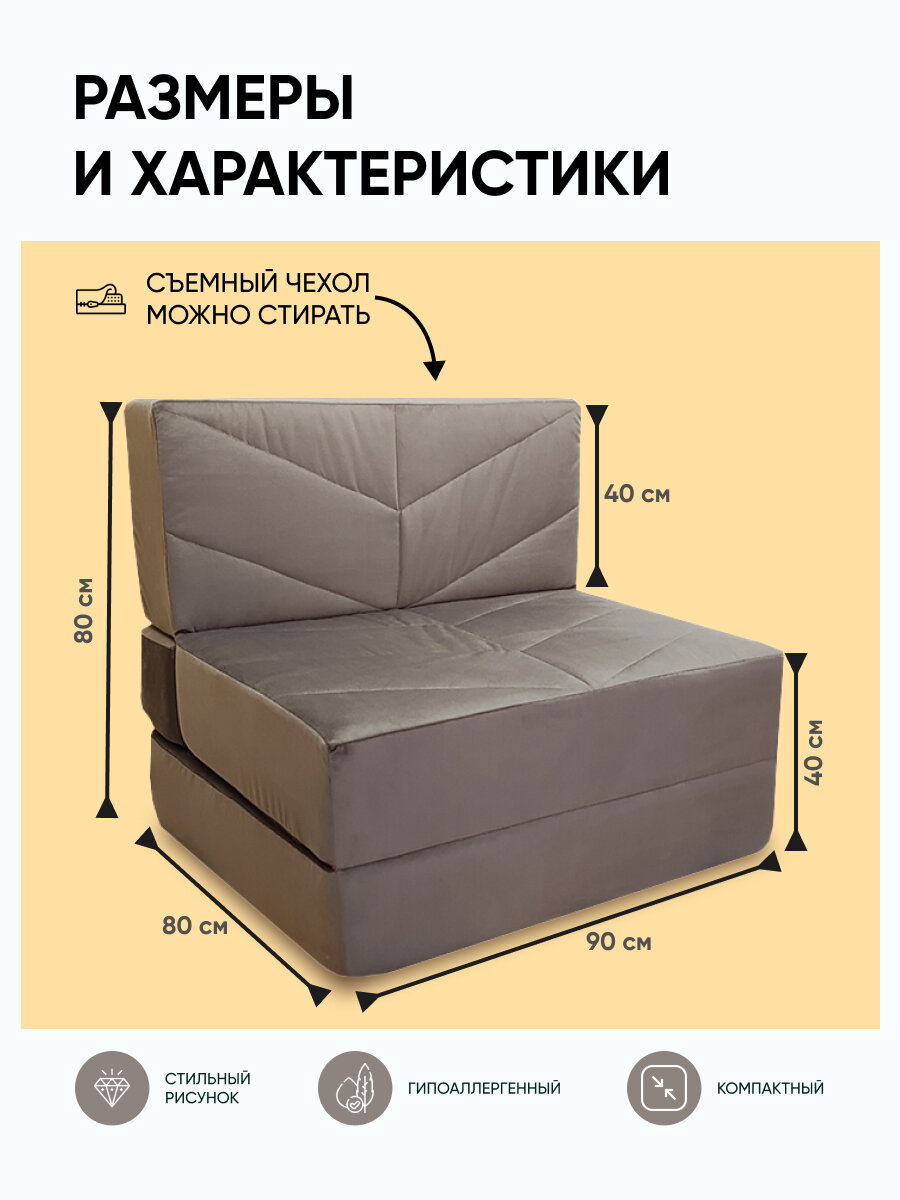 Бескаркасное кресло-кровать Relaxline Кубо, 90х80х60, велюровое, коричневый, спальное место 200х90 интересное: