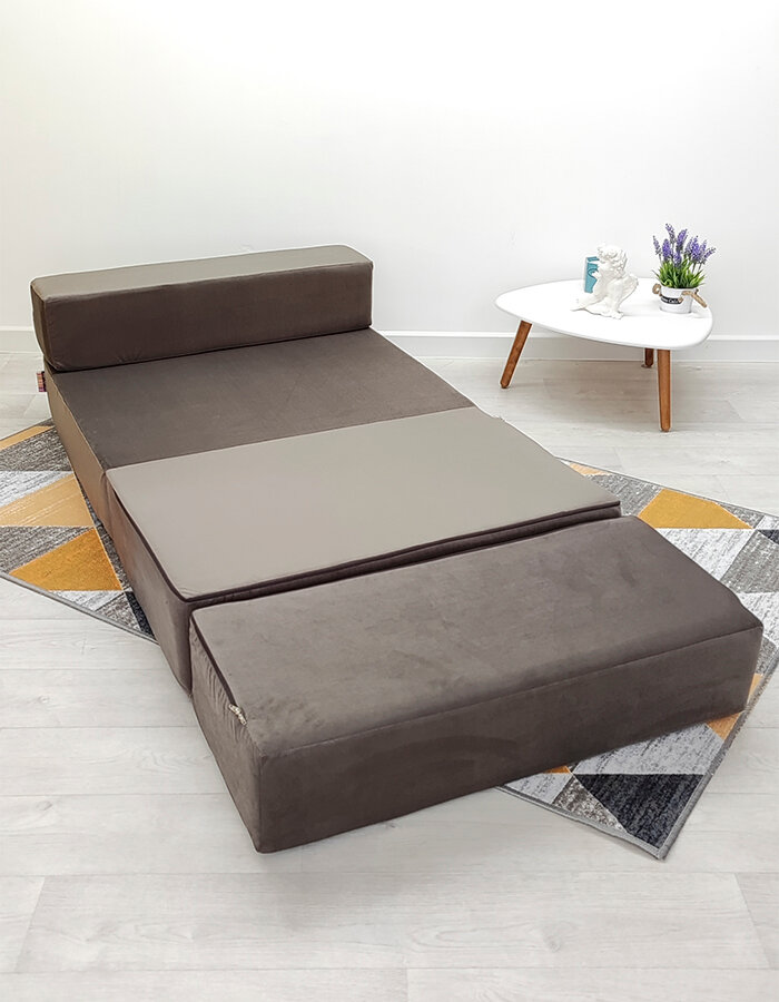 Купить Бескаркасное кресло-кровать Relaxline Кубо, 90х80х60, велюровое, коричневый, спальное место 200х90