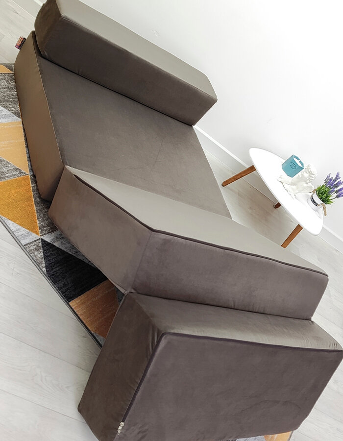 Бескаркасное кресло-кровать Relaxline Кубо, 90х80х60, велюровое, серый, спальное место 200х90