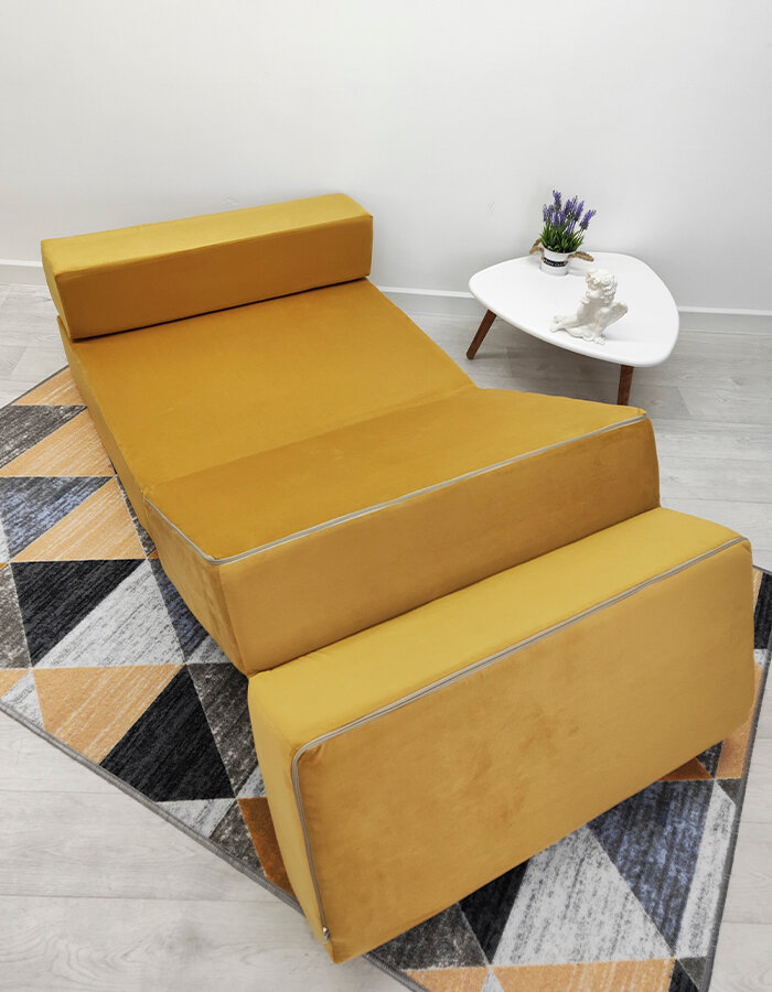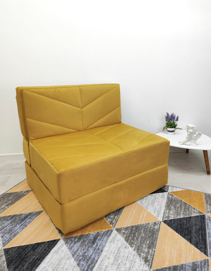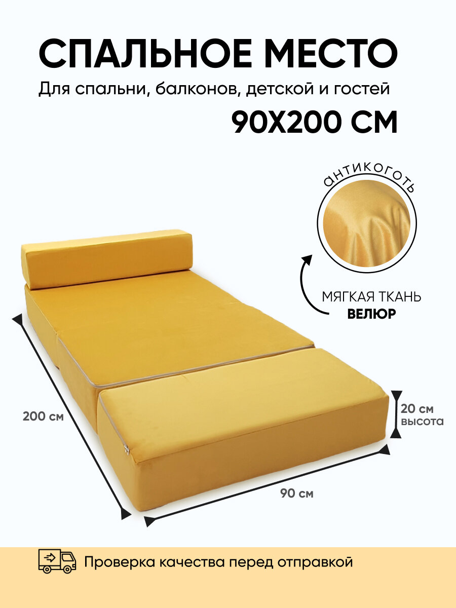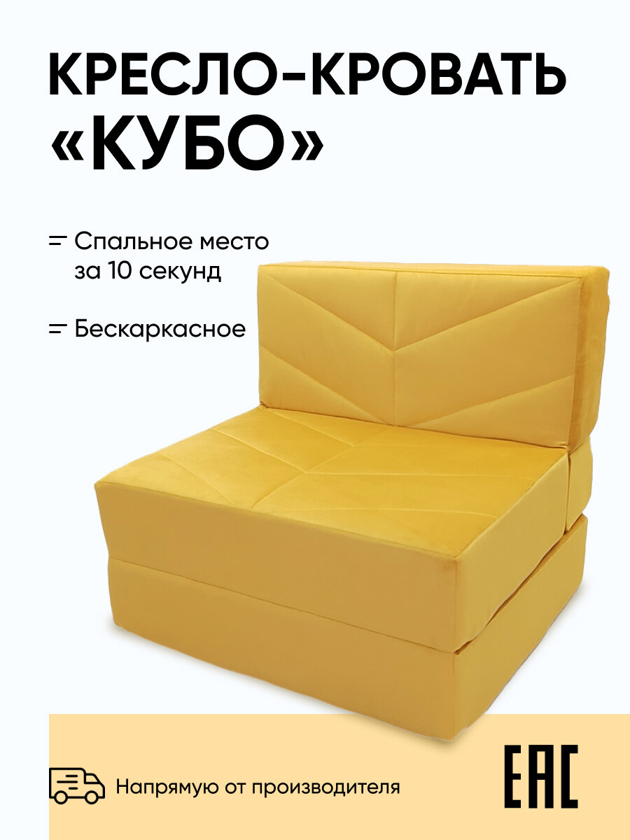 Бескаркасное кресло-кровать Relaxline Кубо, 90х80х60, велюровое, желтое, спальное место 200х90 интересное:
