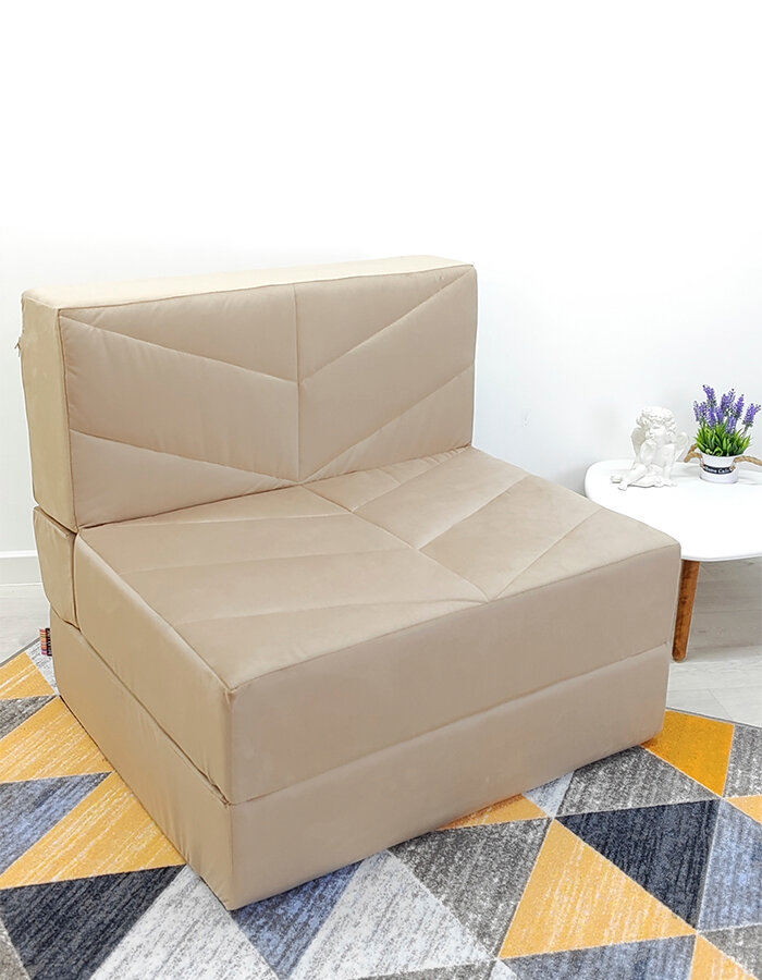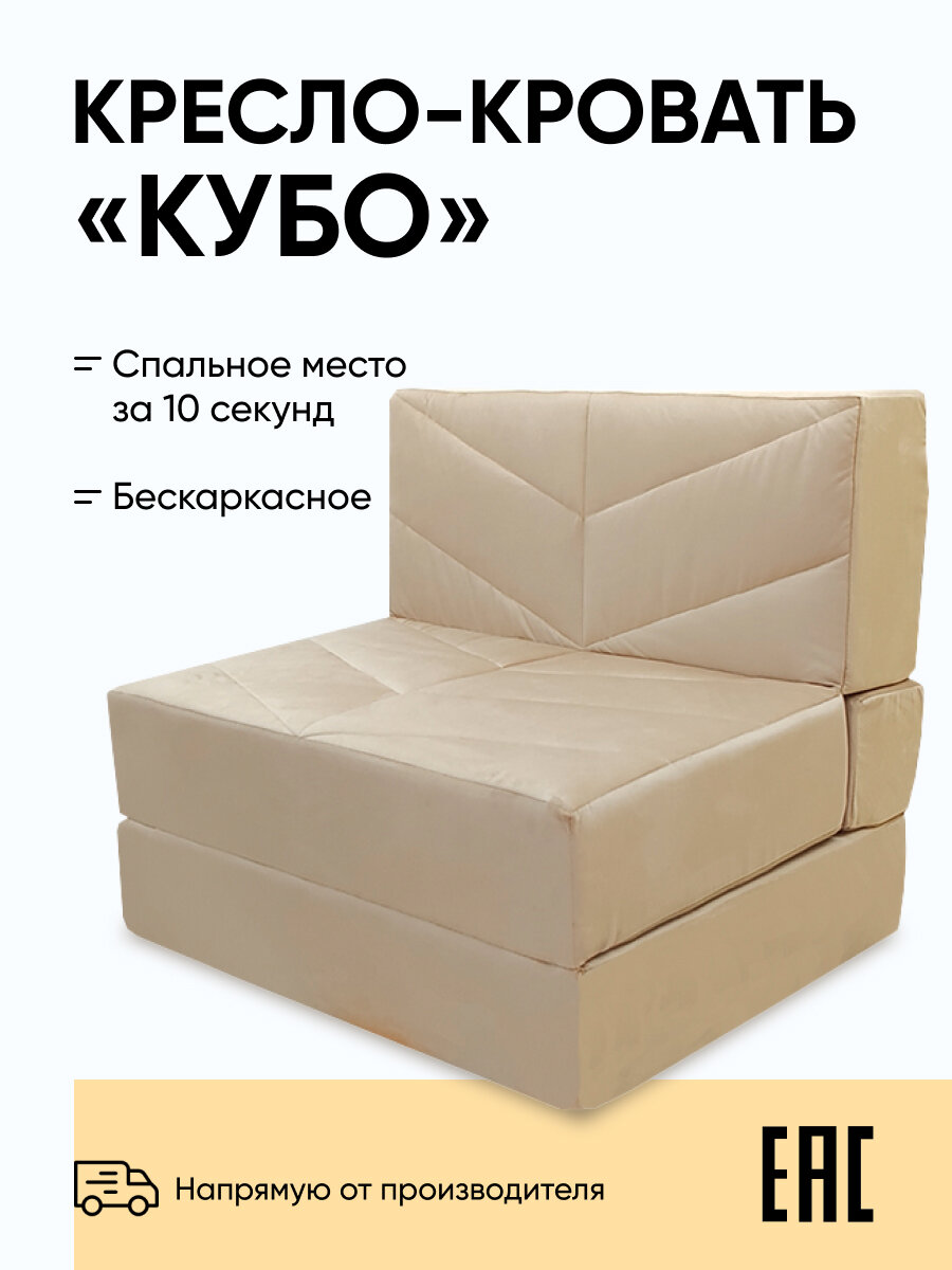 Бескаркасное кресло-кровать Relaxline Кубо, 90х80х60, велюровое, бежевое, спальное место 200х90 интересное: