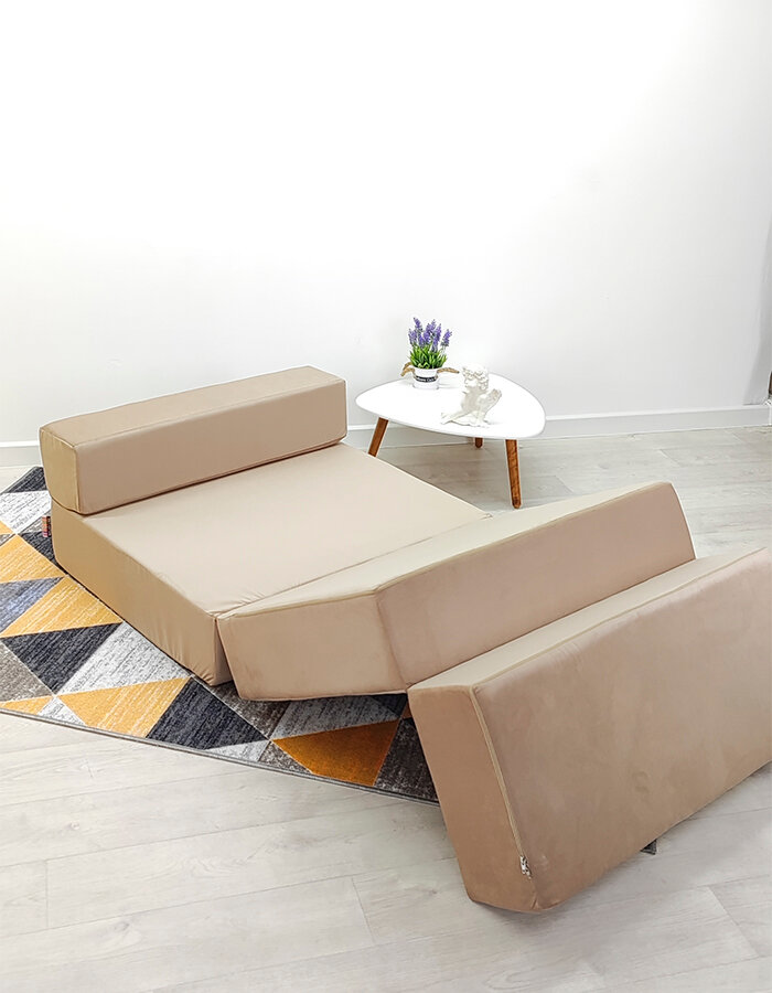 Купить Бескаркасное кресло-кровать Relaxline Кубо, 90х80х60, велюровое, бежевое, спальное место 200х90