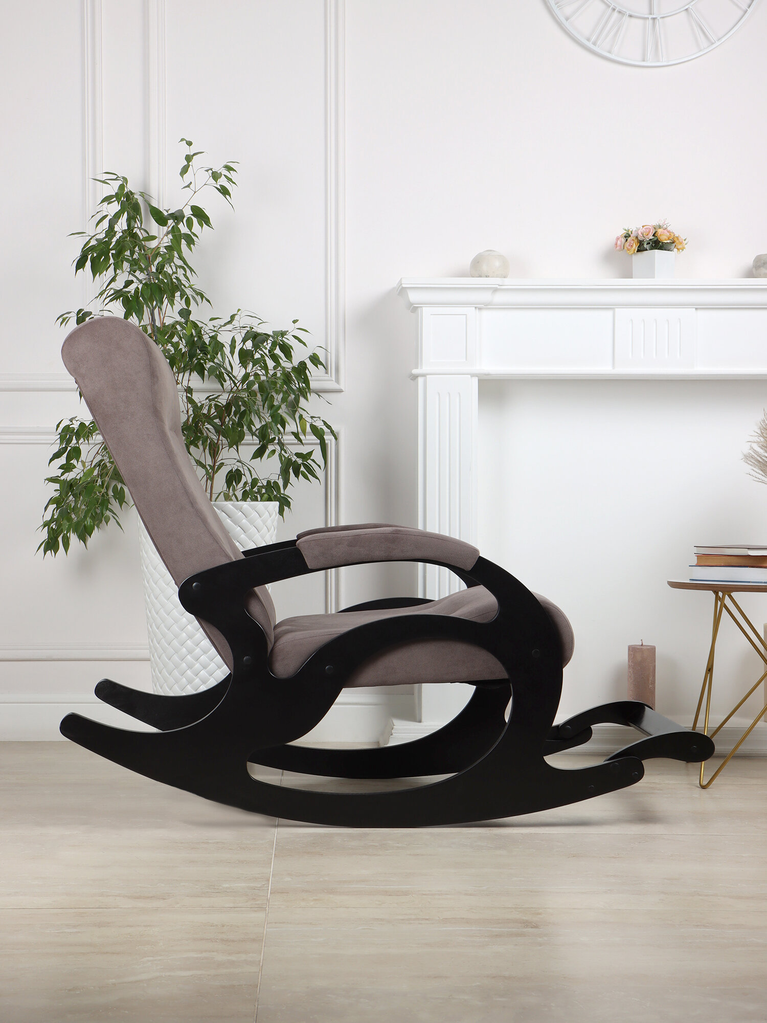 Кресло-качалка для взрослых с подножкой для дома Ларгус 4 велюр Какао