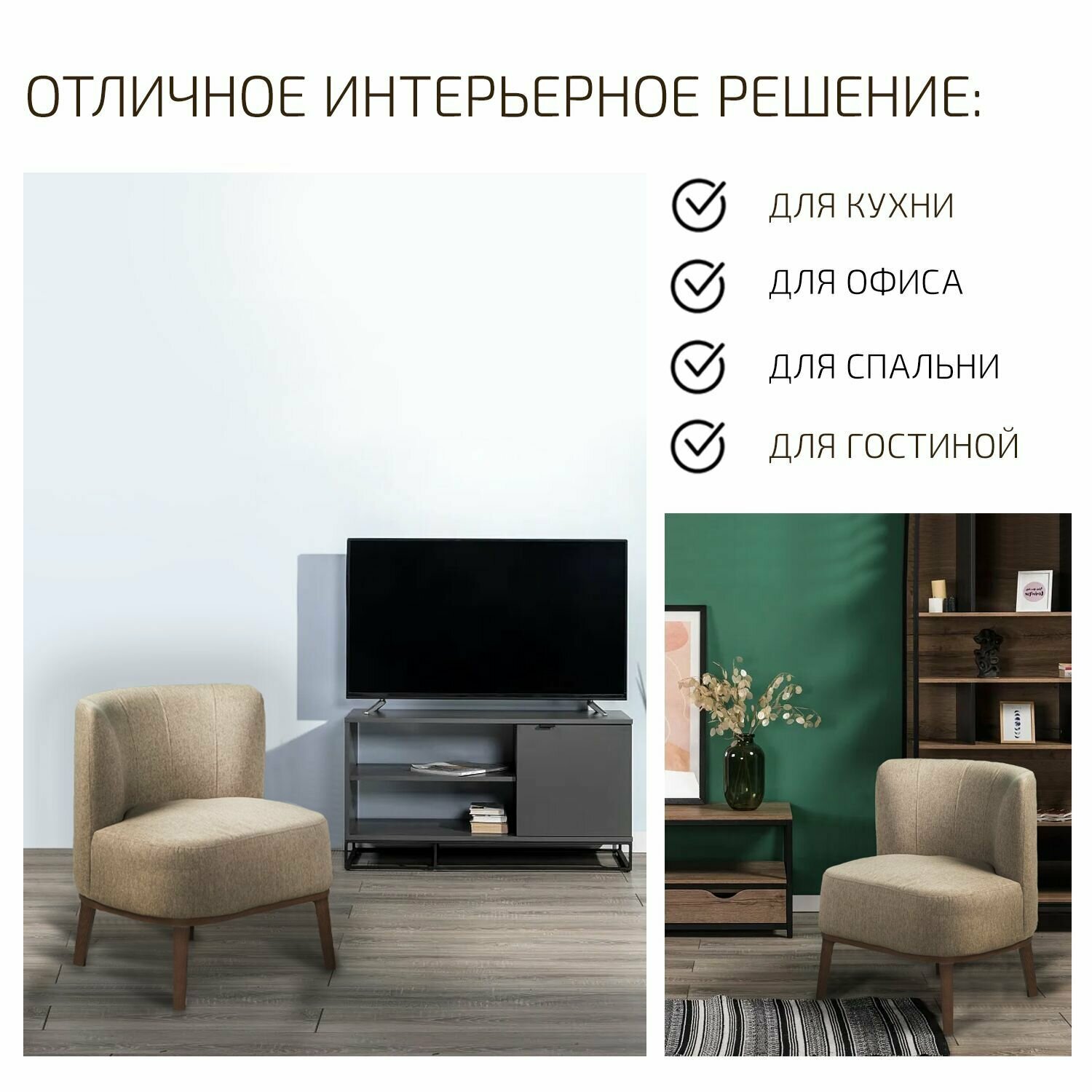 Кресло мягкое для дома, кресло в гостинную для отдыха Шилар Светло-коричневый