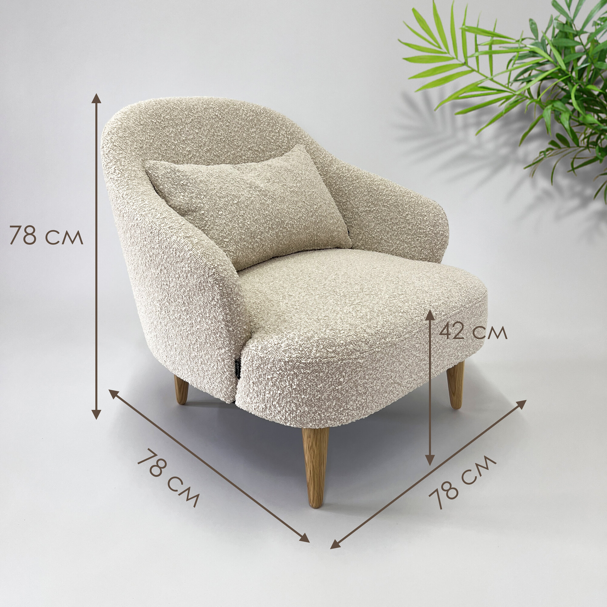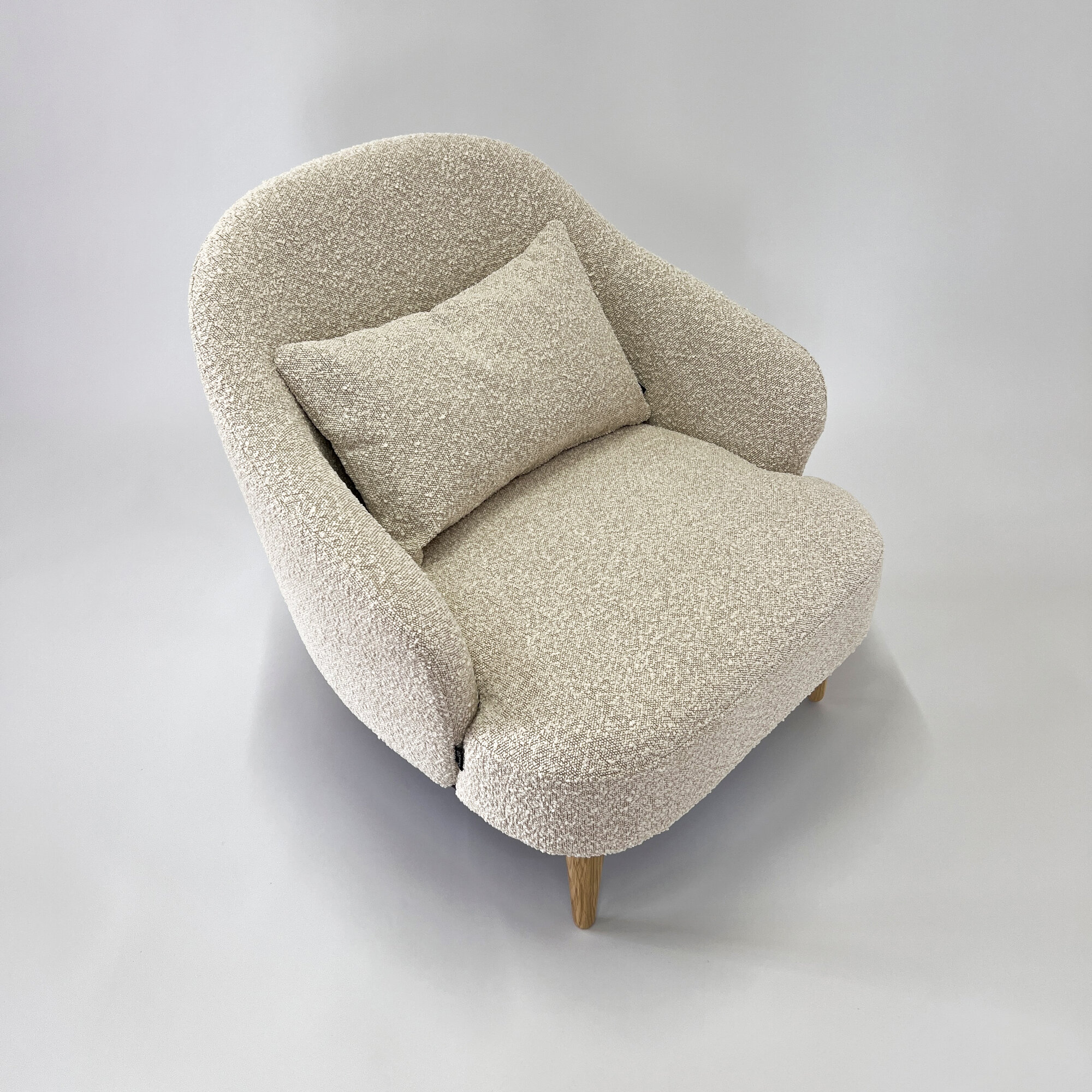Кресло Унно в ткани букле, серое кресло, мягкое кресло, опоры дуб