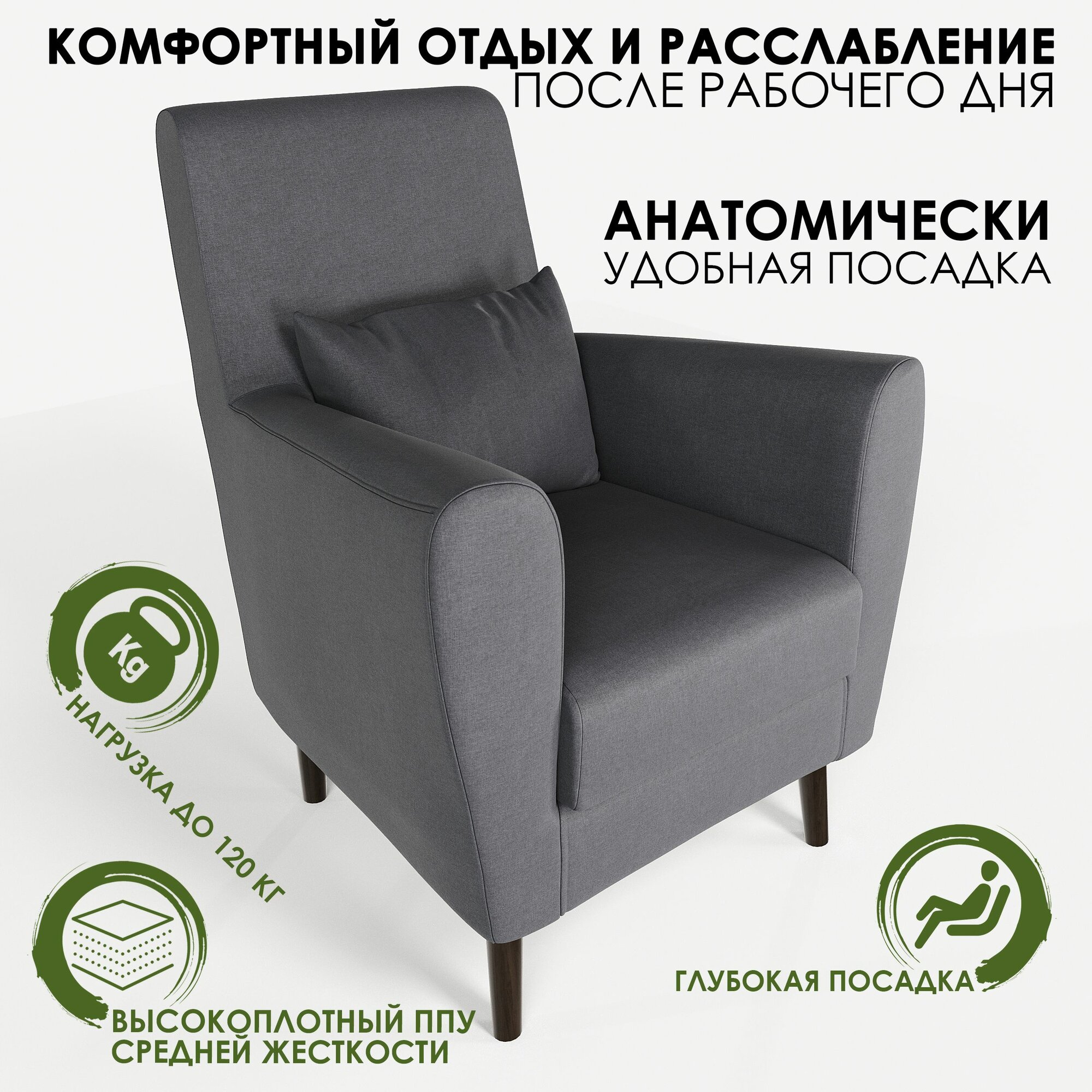 Кресло мягкое Грэйс Z-6 (темно-серый) на высоких ножках с подлокотниками в гостиную, офис, зону ожидания, салон красоты.
