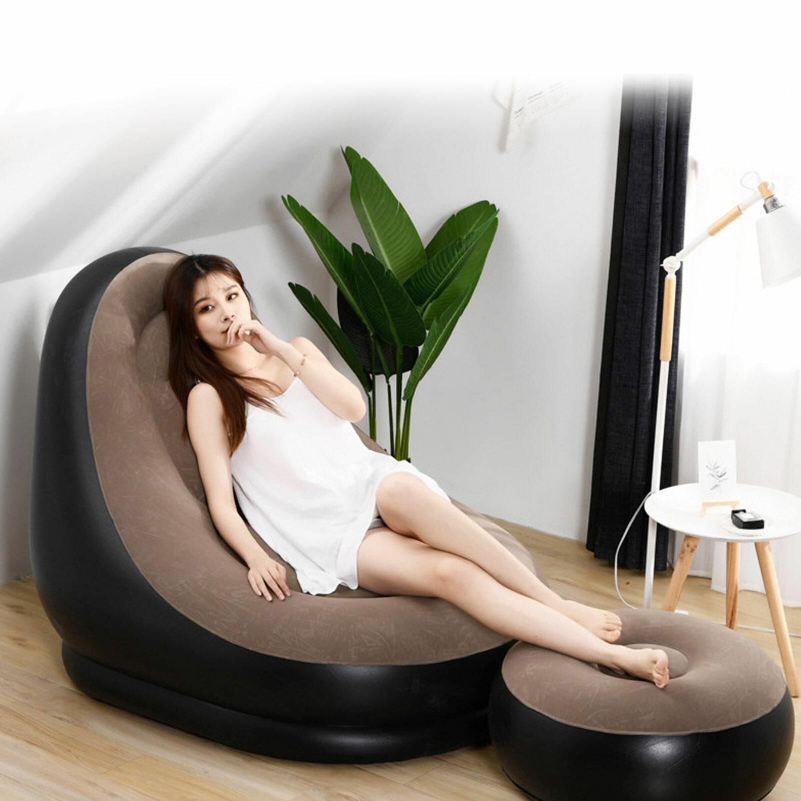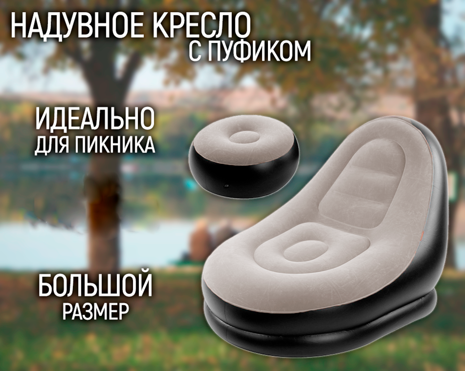 Надувное кресло для дома с пуфиком АМ-306, цвет серый / Кресло надувное для дома и пикника, 116х98х83 см. интересное: