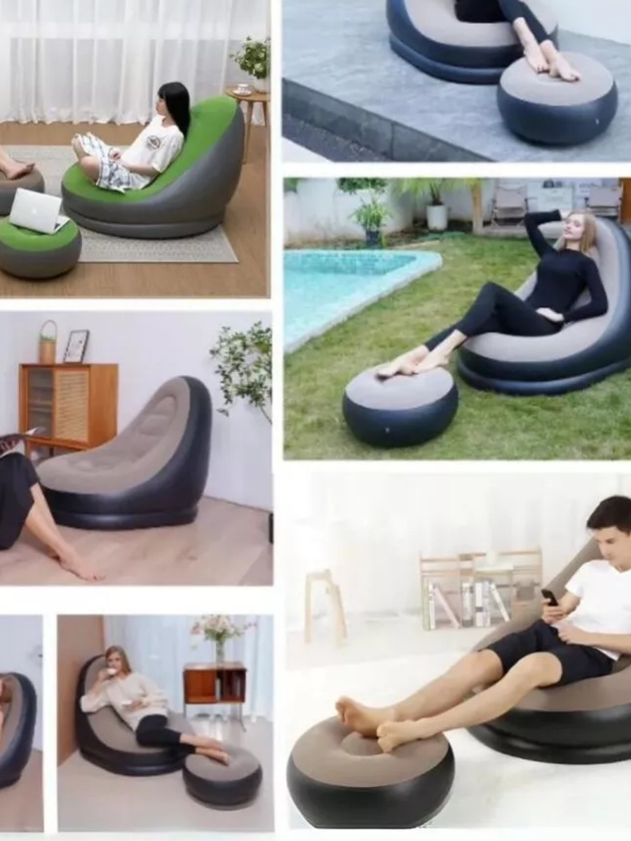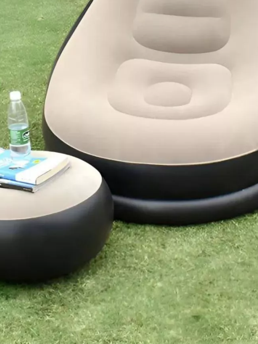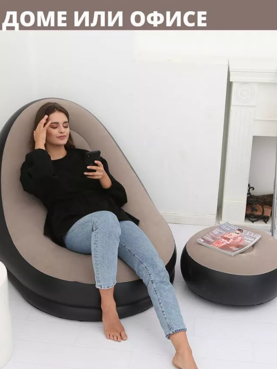 Надувное кресло-кровать с пуфиком и насосом интересное: