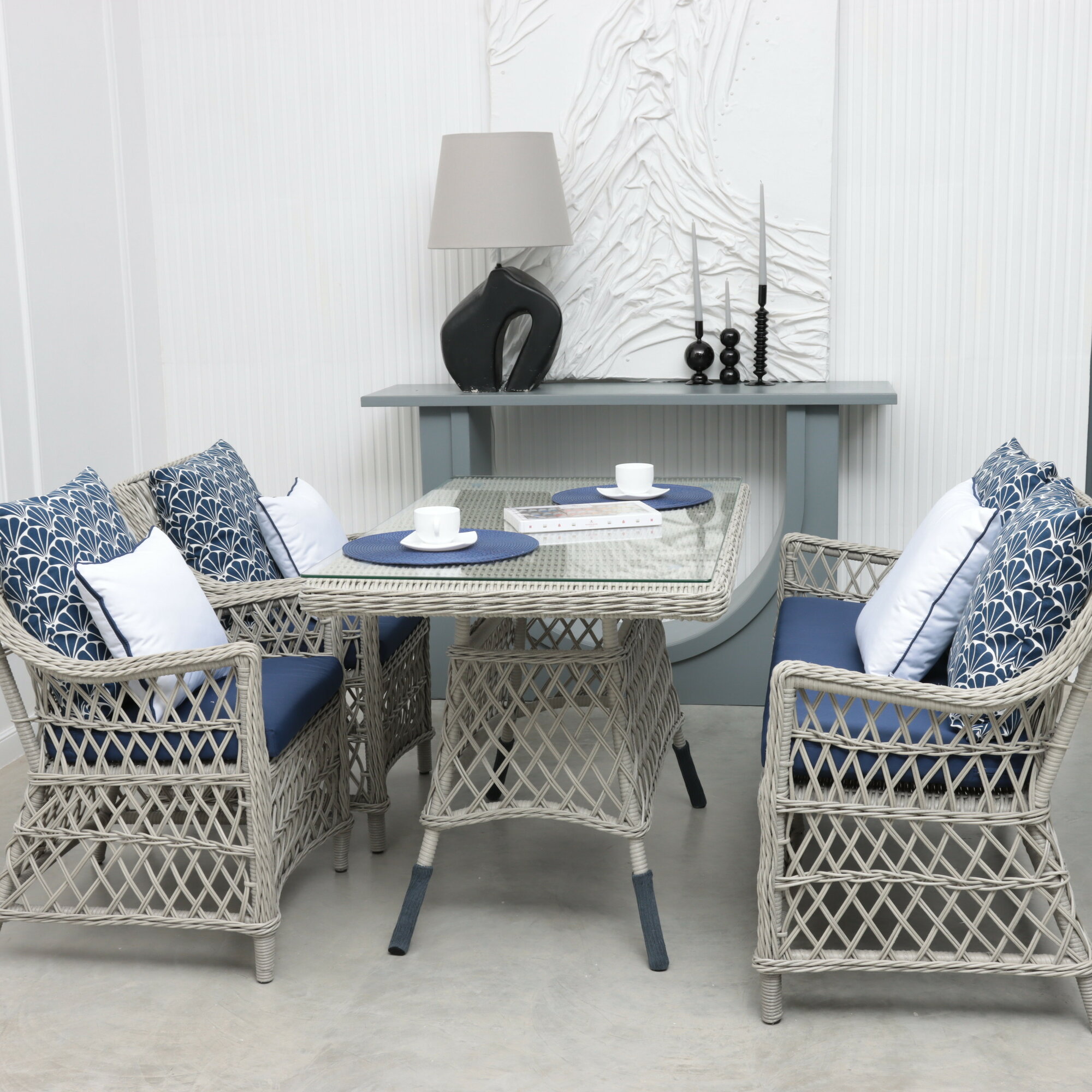 Купить Комплект плетеной мебели Гайс из ротанга с подушками (обеденный стол+скамья+2 кресла),для сада, сицилия+ракушки
