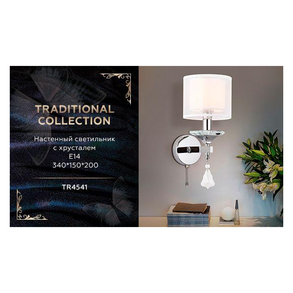 Ниже Вы можете прочитать отзывы на Настенный светильник с хрусталем TR4541 CH/WH хром/белый E14 max 40W 340*150*200, ознакомится с подробными характеристиками, посмотреть интересные обзоры и фотографии на Настенный светильник с хрусталем TR4541 CH/WH хром/белый E14 max 40W 340*150*200.
