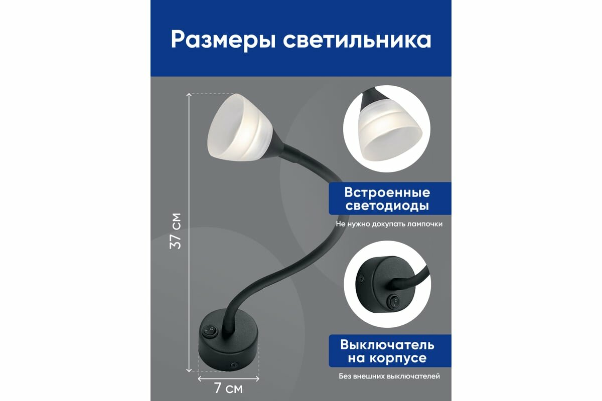 | Особенности | крепление в комплекте / лампы в комплекте / на гибкой ножке / поворотный / с выключателем |