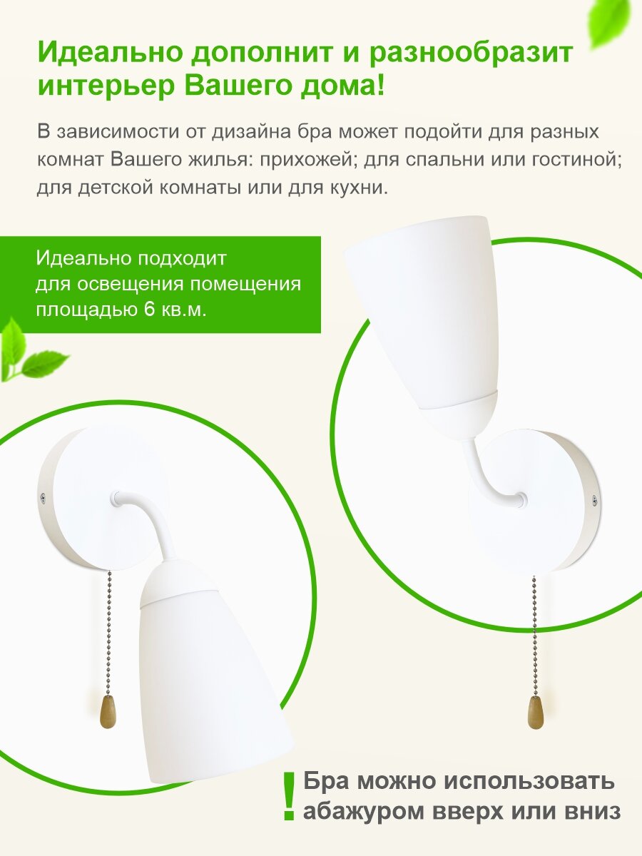 | Комплектация | бра с пластиковым абажуром и цепочным выключателем-дергалкой на корпусе. |