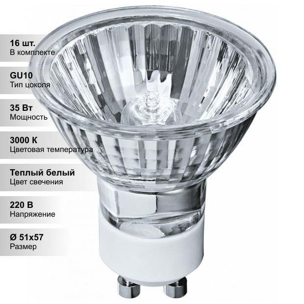 Купить (16 шт.) Галогенная лампочка Navigator JCDRC 35Вт 230В GU10 размер 51х57 мм