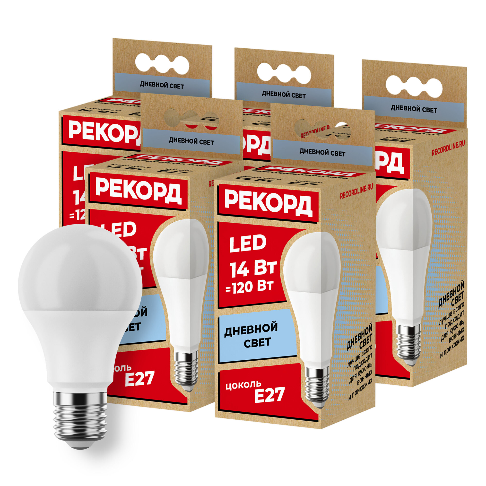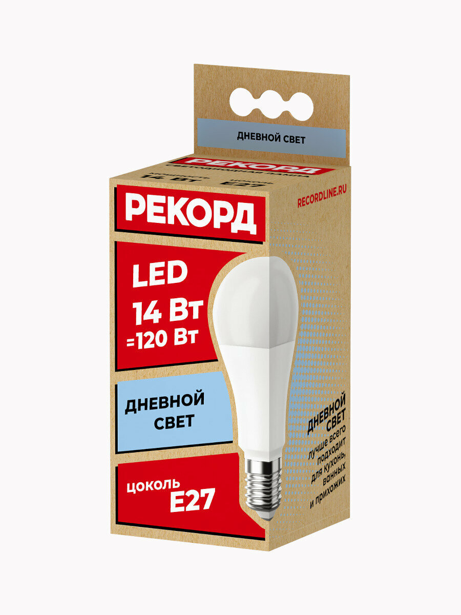 Набор светодиодных лампочек рекорд LED A60 14Вт E27 4000К для дома, для гостиной комнаты, 5 шт. интересное: