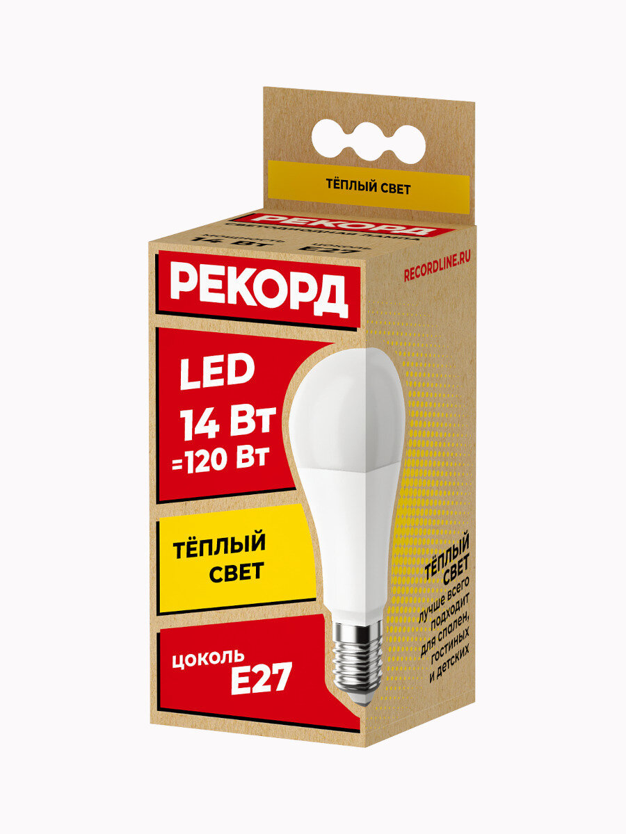 Набор светодиодных лампочек рекорд LED A60 14Вт E27 3000К для дома, для гостиной комнаты, 5 шт. интересное: