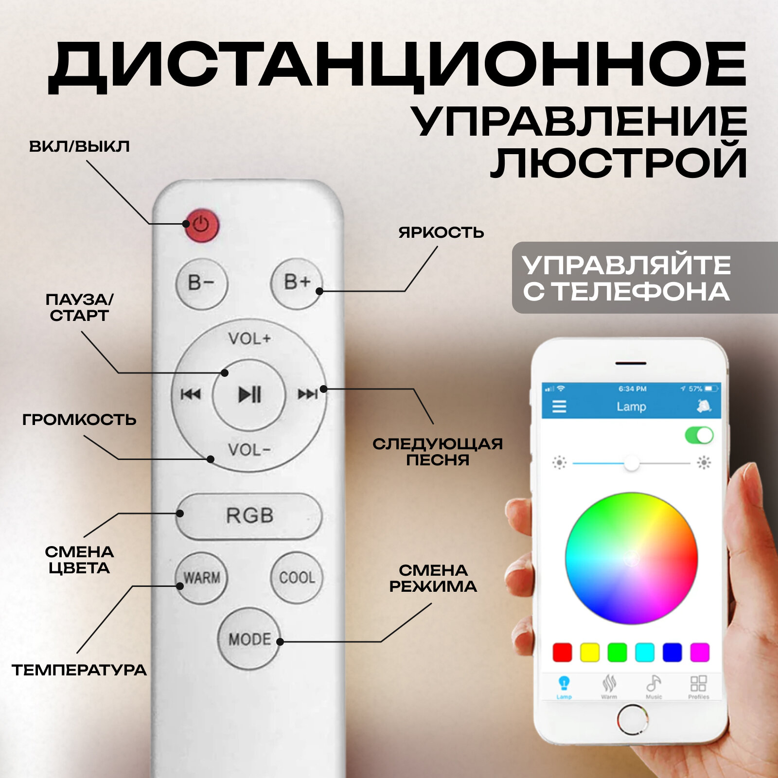 Потолочная RGB разноцветная люстра с колонкой Bluetooth и пультом, 60W, диаметр 390 мм, управление через телефон