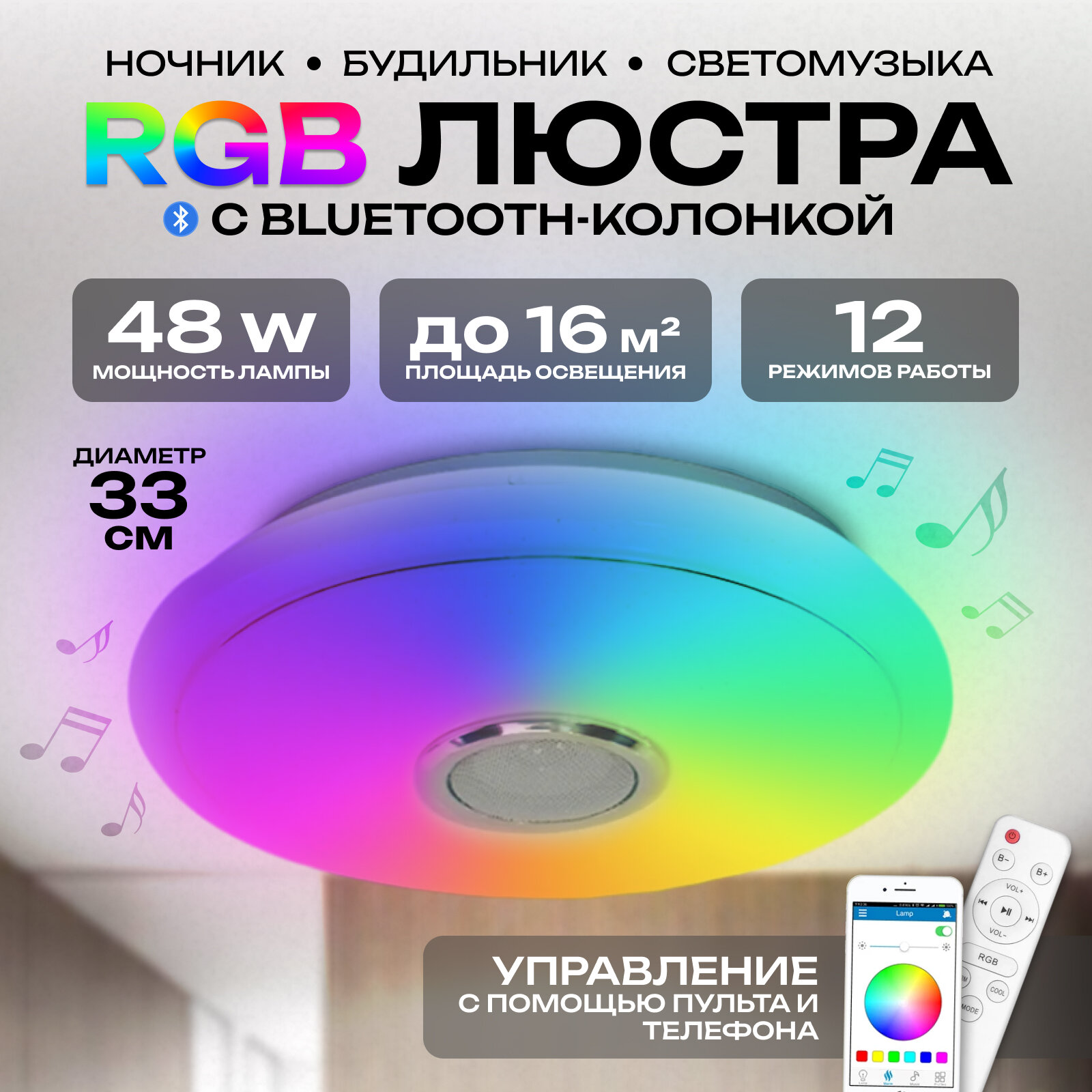 Купить Потолочная RGB разноцветная люстра с колонкой Bluetooth и пультом, 48W, диаметр 330 мм, управление через телефон