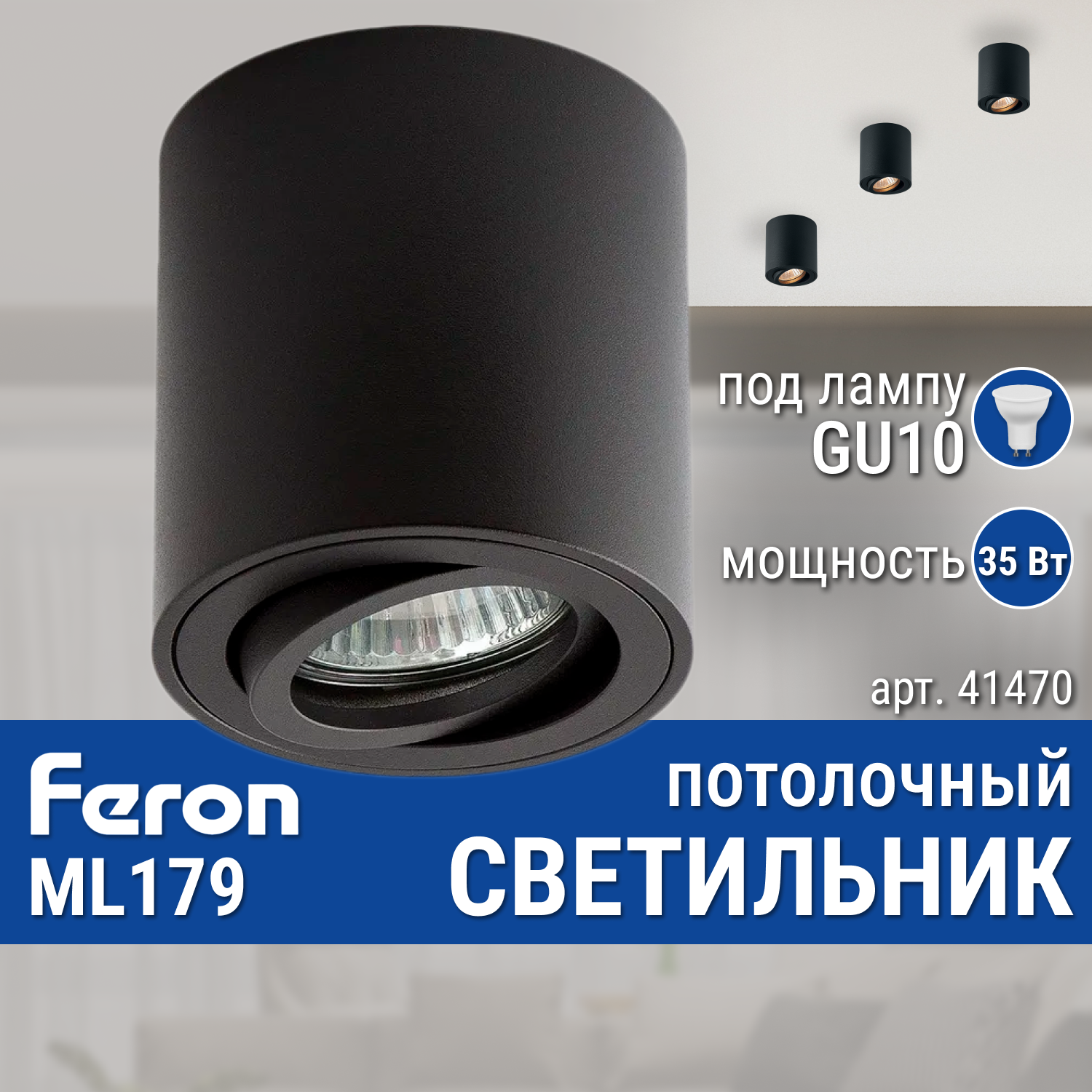 Купить Светильник потолочный MR16 35W 230V, черный, ML179, Feron, 41470