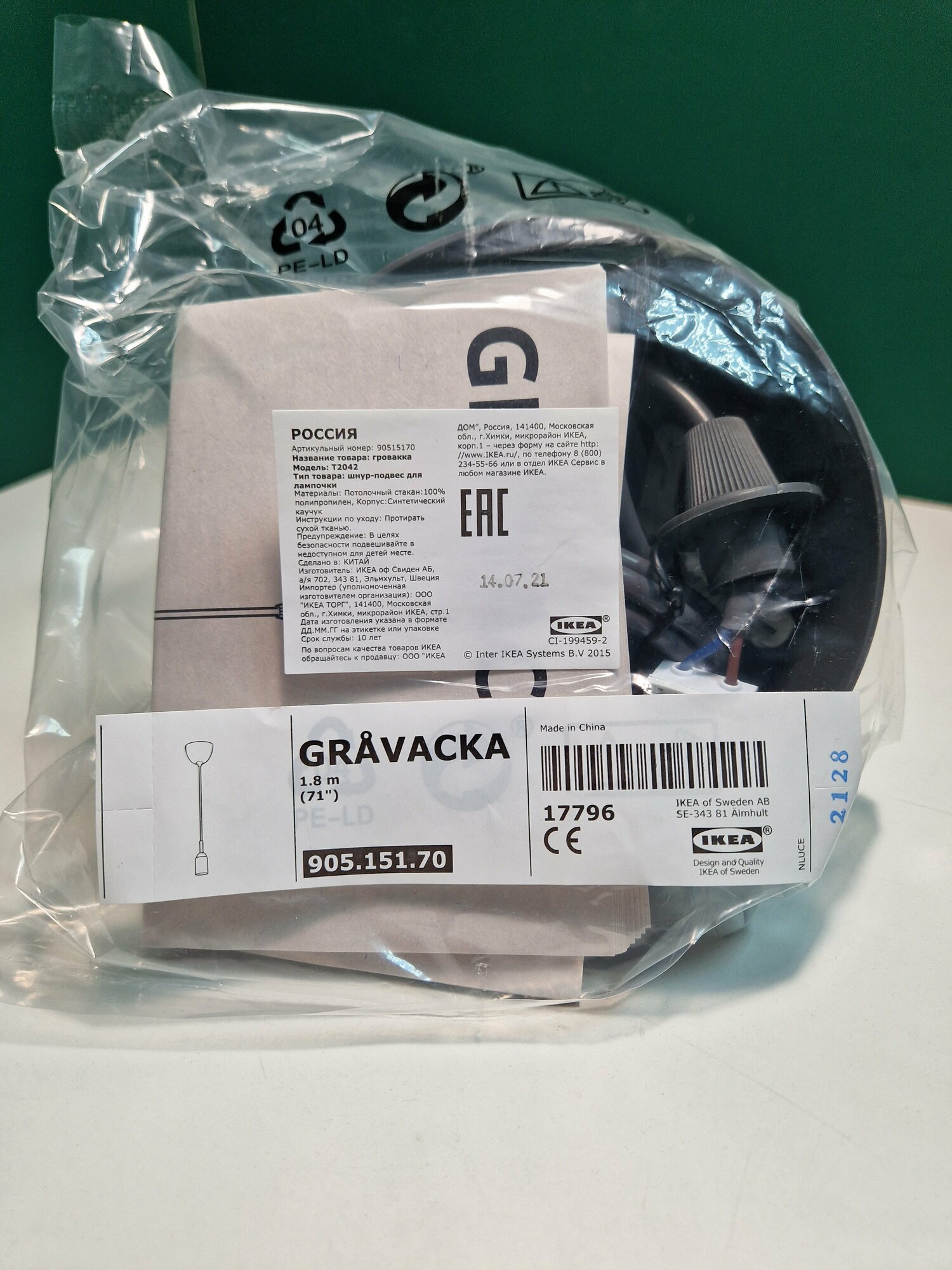 Шнур-подвес для лампочки IKEA GRAVACKA 1.8м серый интересное:
