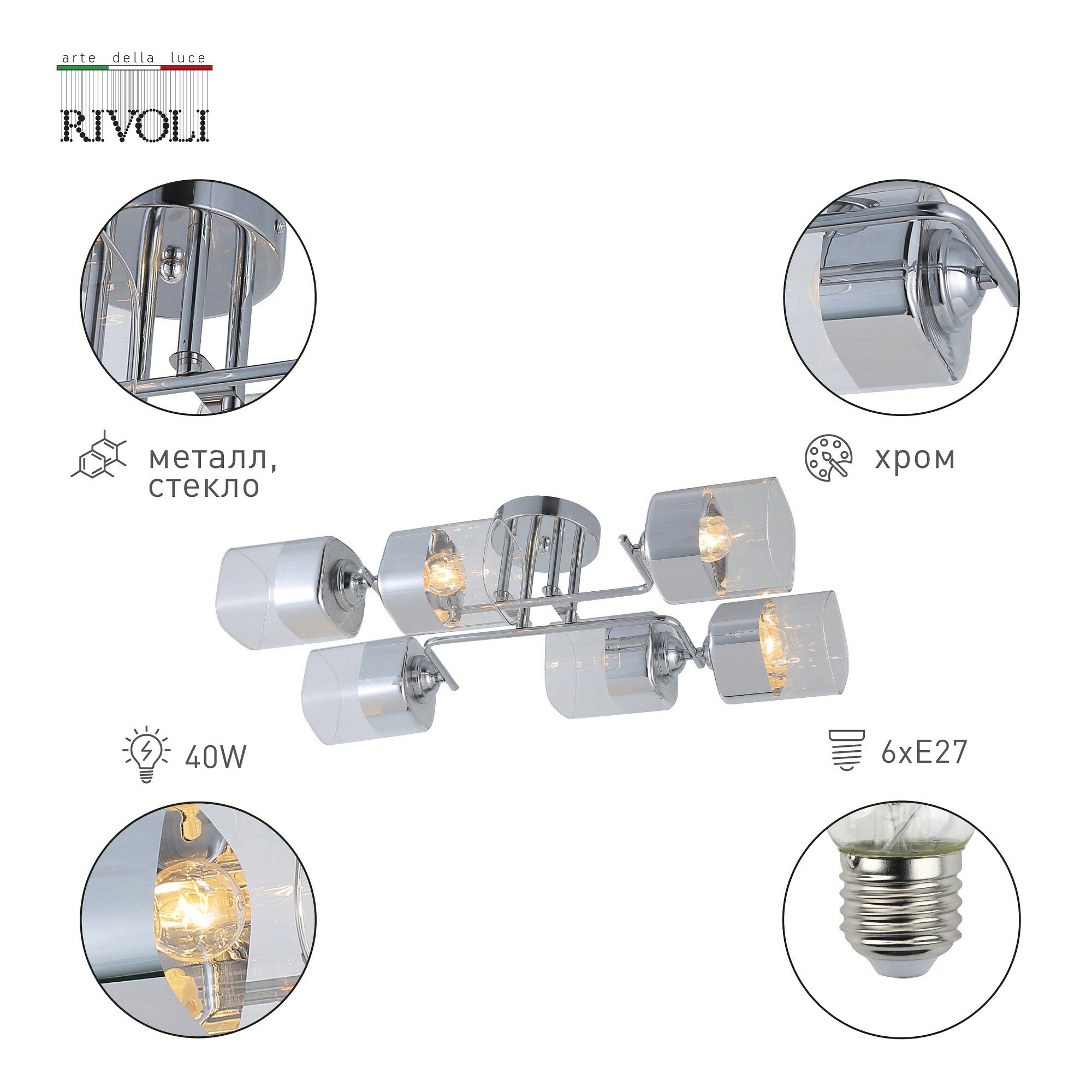 Люстра потолочная Rivoli Alana под лампы 6хЕ27 40 Вт хром модерн 18м2