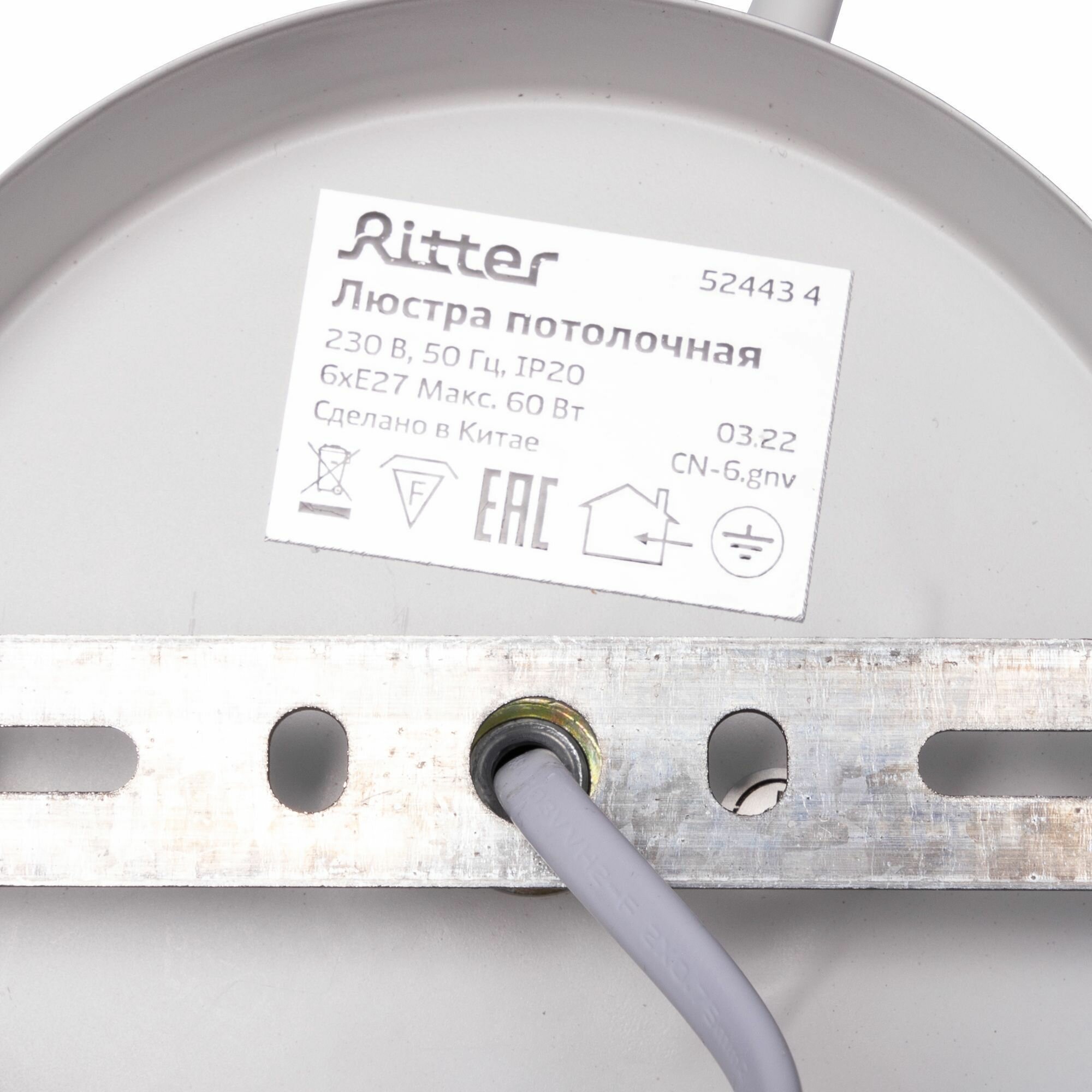 Купить Люстра потолочная GRACE Modern, 6хЕ27, 780х780х260, белый, дерево, Ritter 52443 4