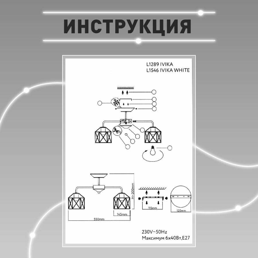 Люстра потолочная Lamplandia L1546 IVIKA WHITE, E27*6 макс 40Вт интересное: