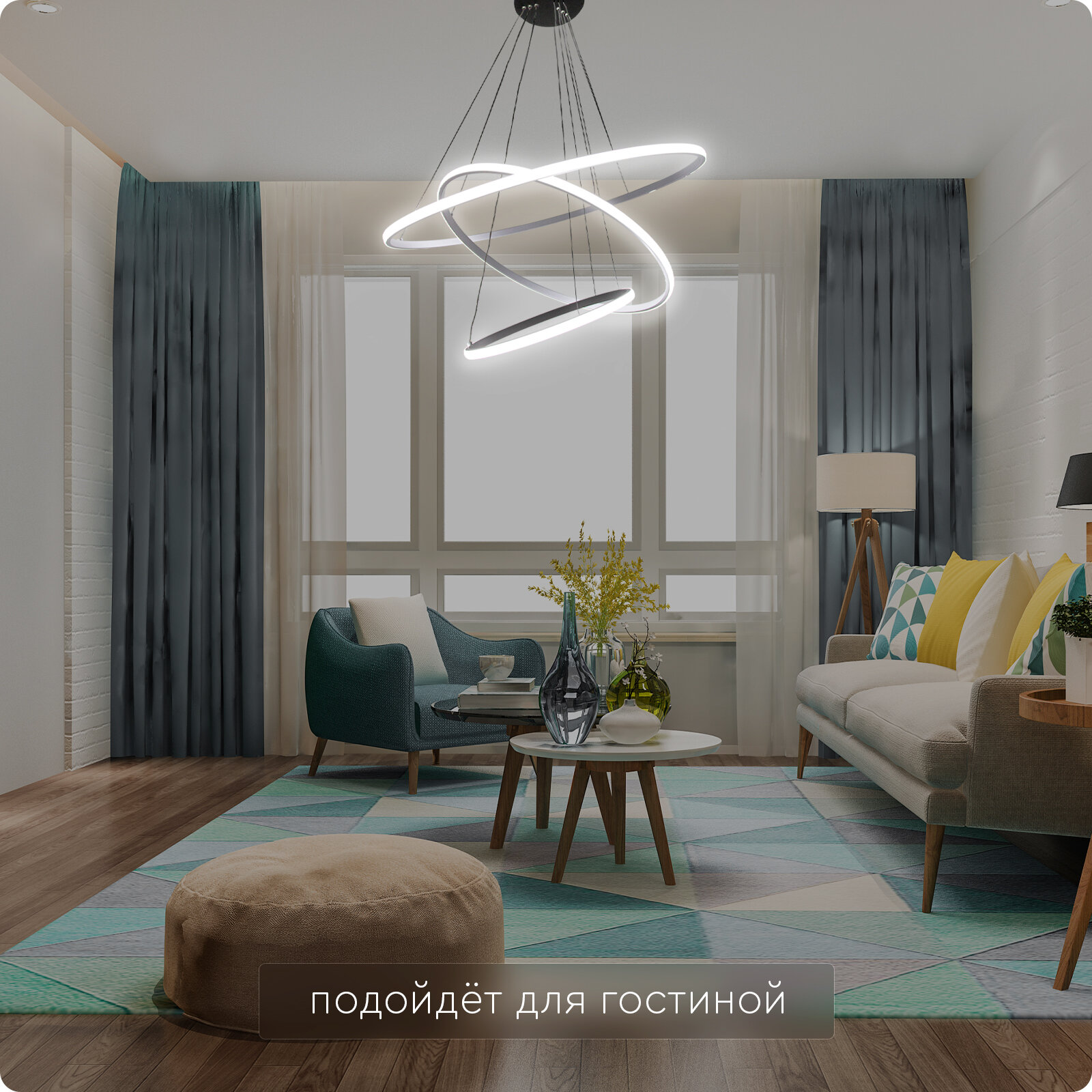 Люстра потолочная светильник (3 кольца, 80 Ватт, с пультом) Hans&Helma подвесной светодиодный LED для гостиной кухни спальни интересное: