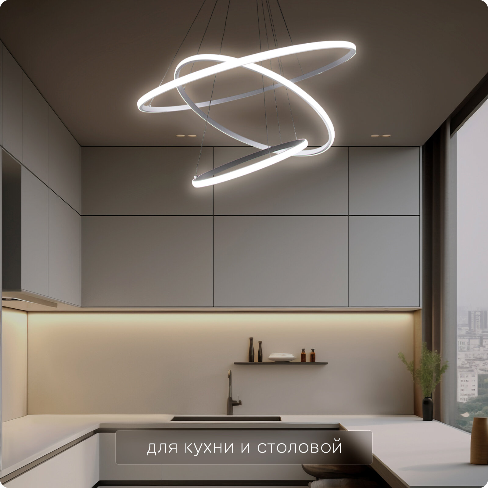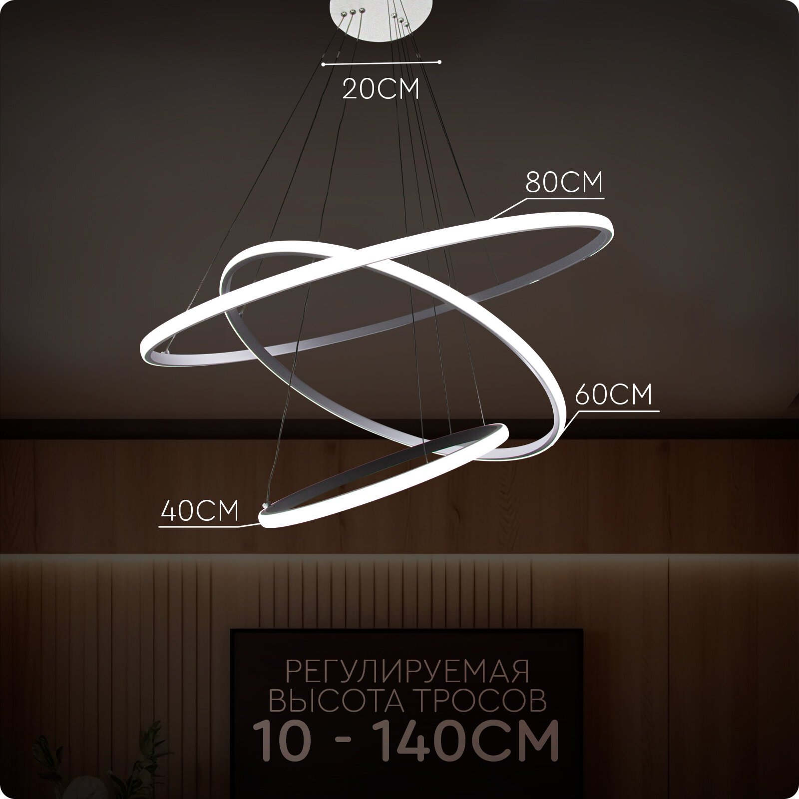 Купить Люстра потолочная светильник (3 кольца, 80 Ватт, с пультом) Hans&Helma подвесной светодиодный LED для гостиной кухни спальни