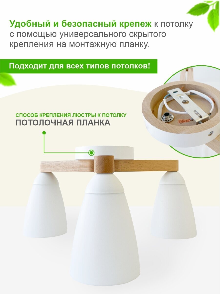 Люстра потолочная "Изабелла", 3хE14x40Вт, белый и натуральный, Дубравия, 120-51-23 интересное: