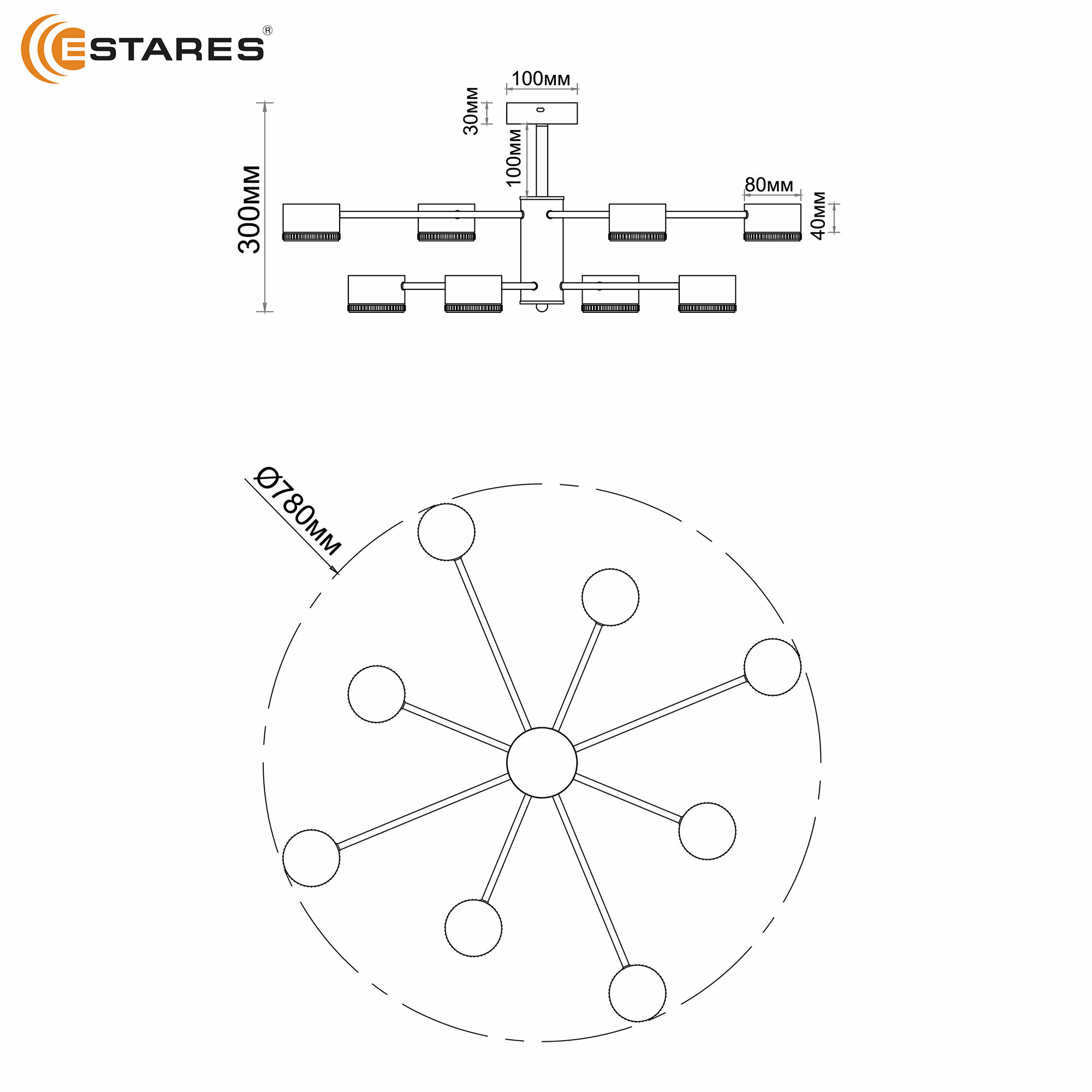 Люстра Густа 8xGX53 R-780x300-BLACK-IP20