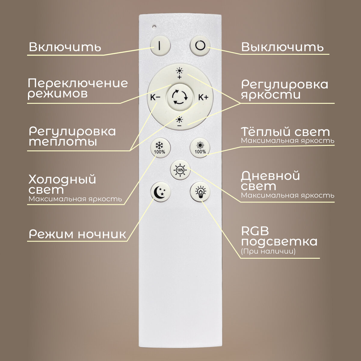 | Управление | механическое / пульт дистанционного управления / регулировка яркости диммером |