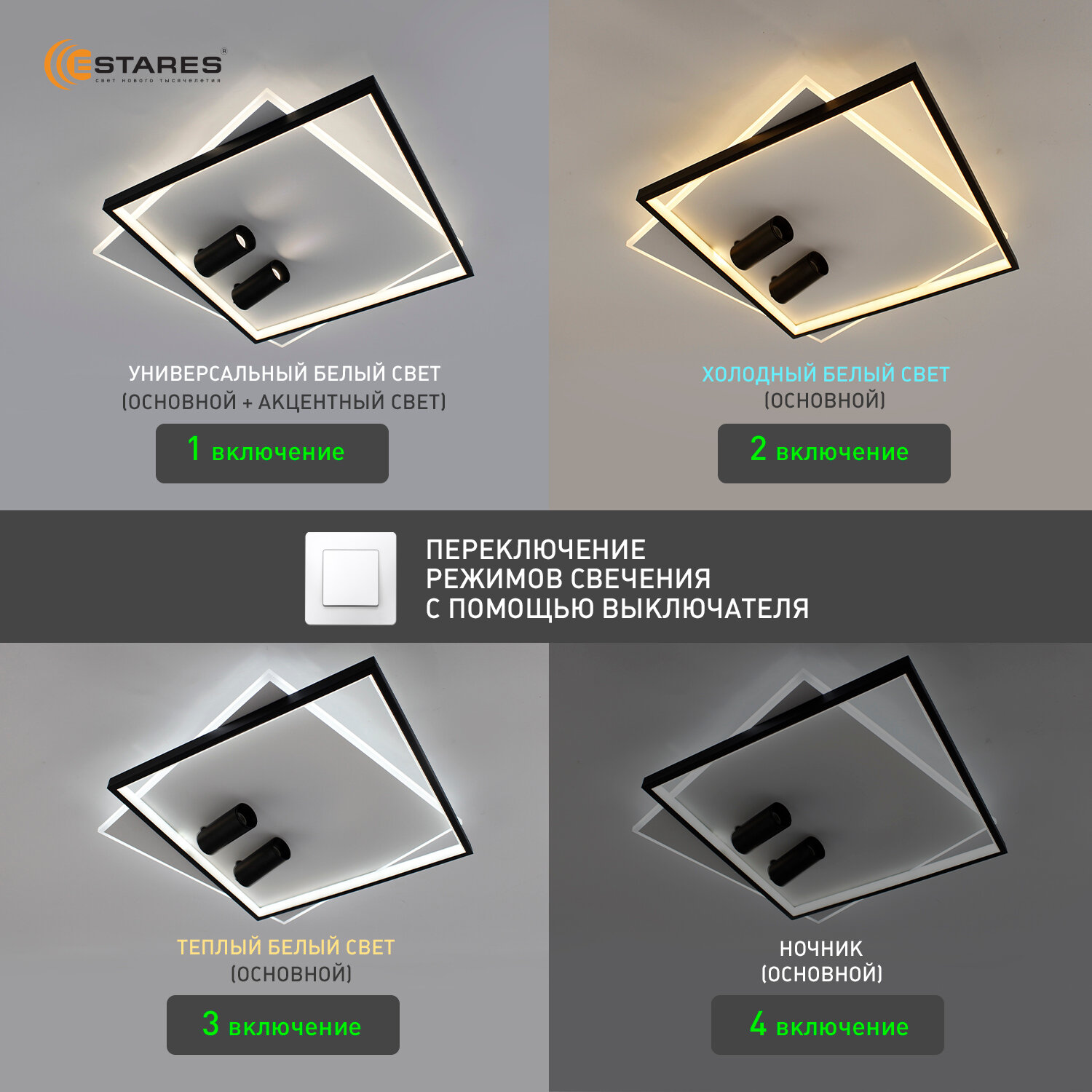 Люстра Управляемый светодиодный потолочный светильник GEOMETRIA downlight 75вт Квадрат Estares интересное: