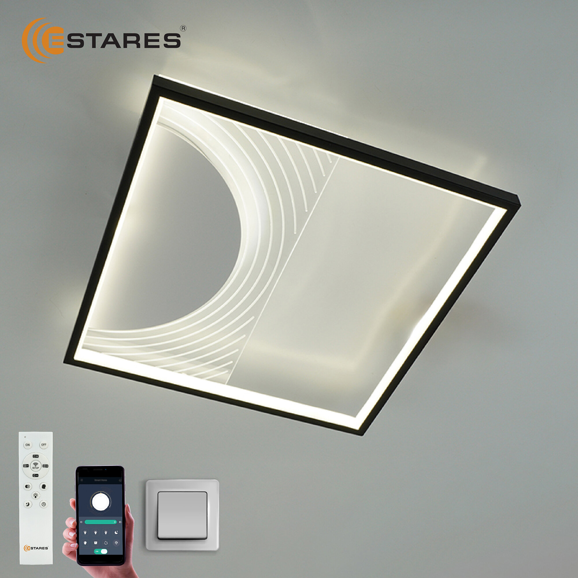 Люстра Управляемый светодиодный потолочный светильник GEOMETRIA downlight 75вт Квадрат Estares