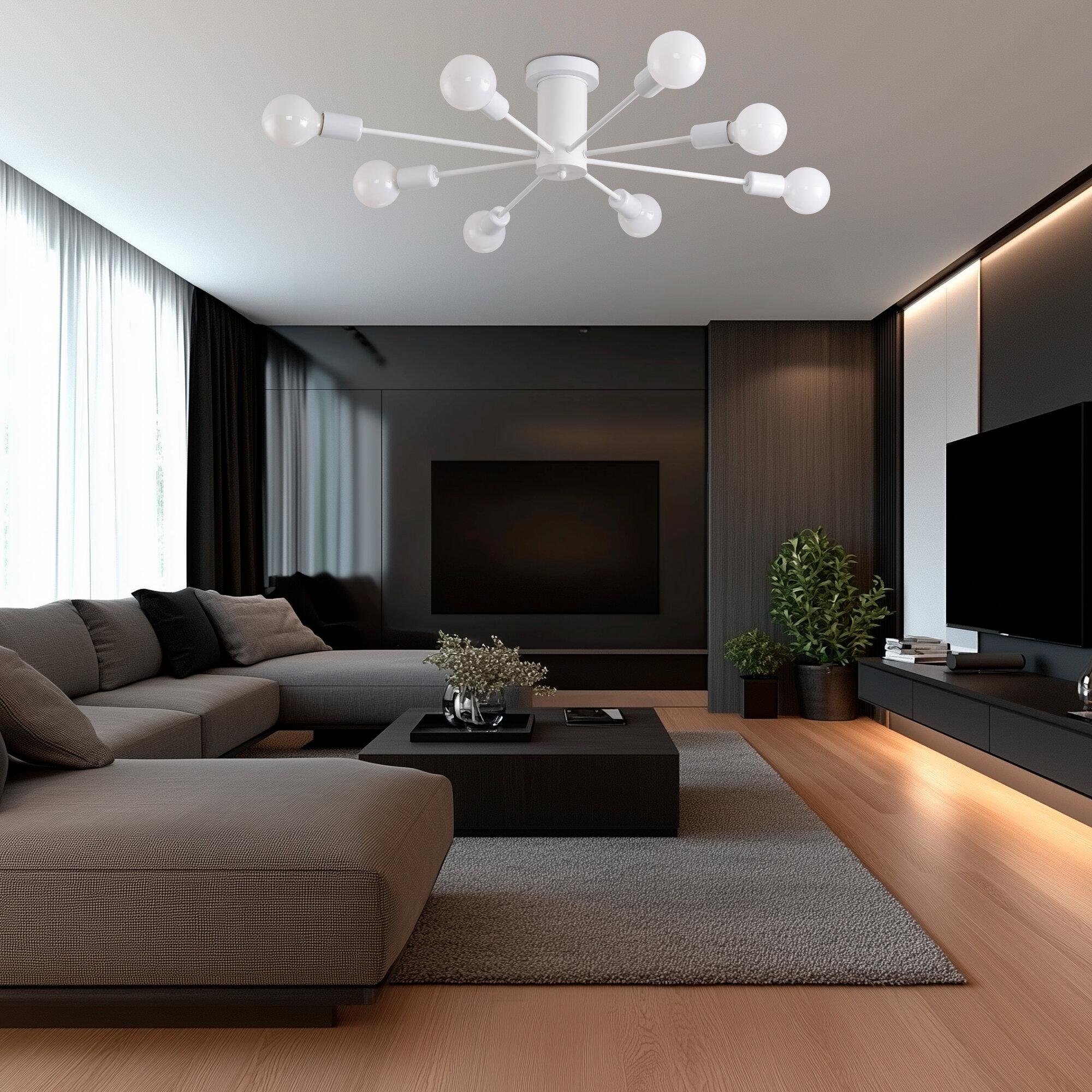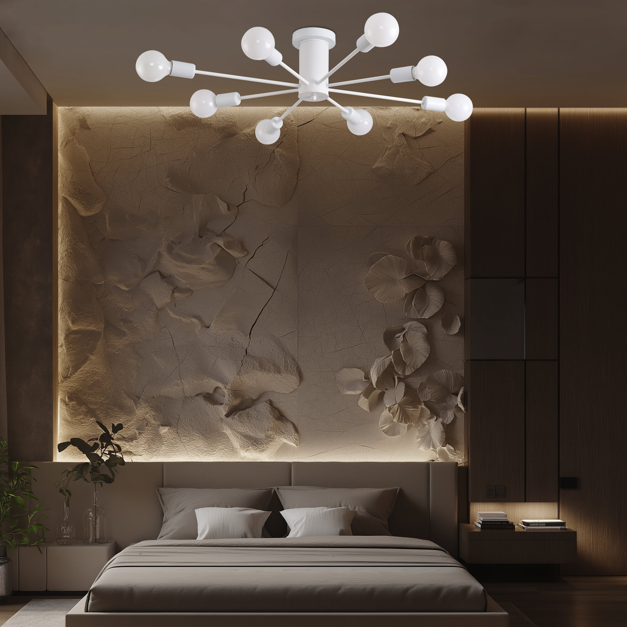 Люстра с пультом светодиодная потолочная 176W, 8 ламп, цветок, большая, белая, LEDCITY