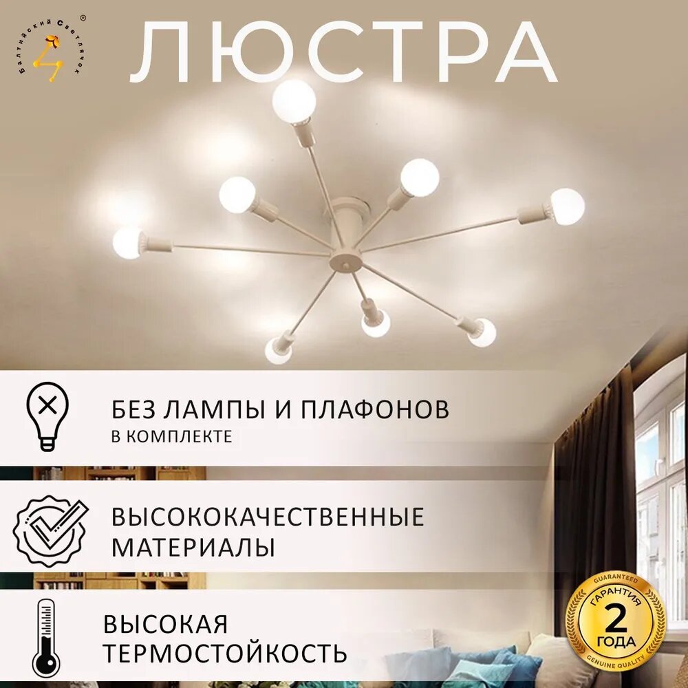 Люстра подвесная потолочная Балтийский Светлячок в стиле лофт, белая, 8 рожков для спальни, кухни, кабинета