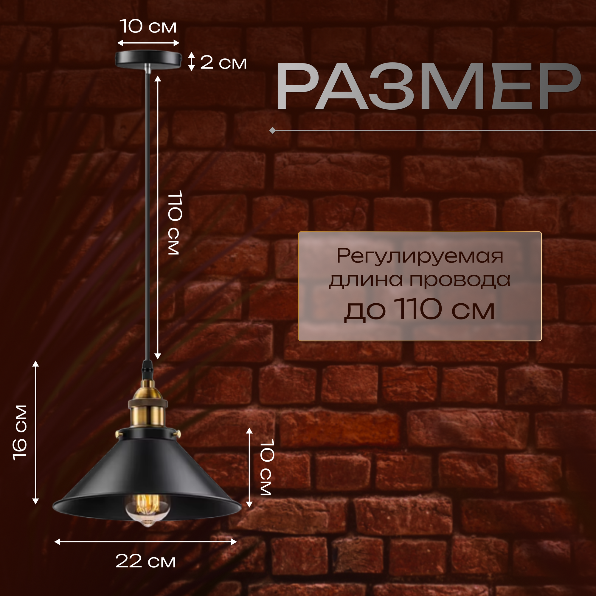 Винтажный подвесной светильник в стиле лофт, E27, диаметр 22 см., черный интересное: