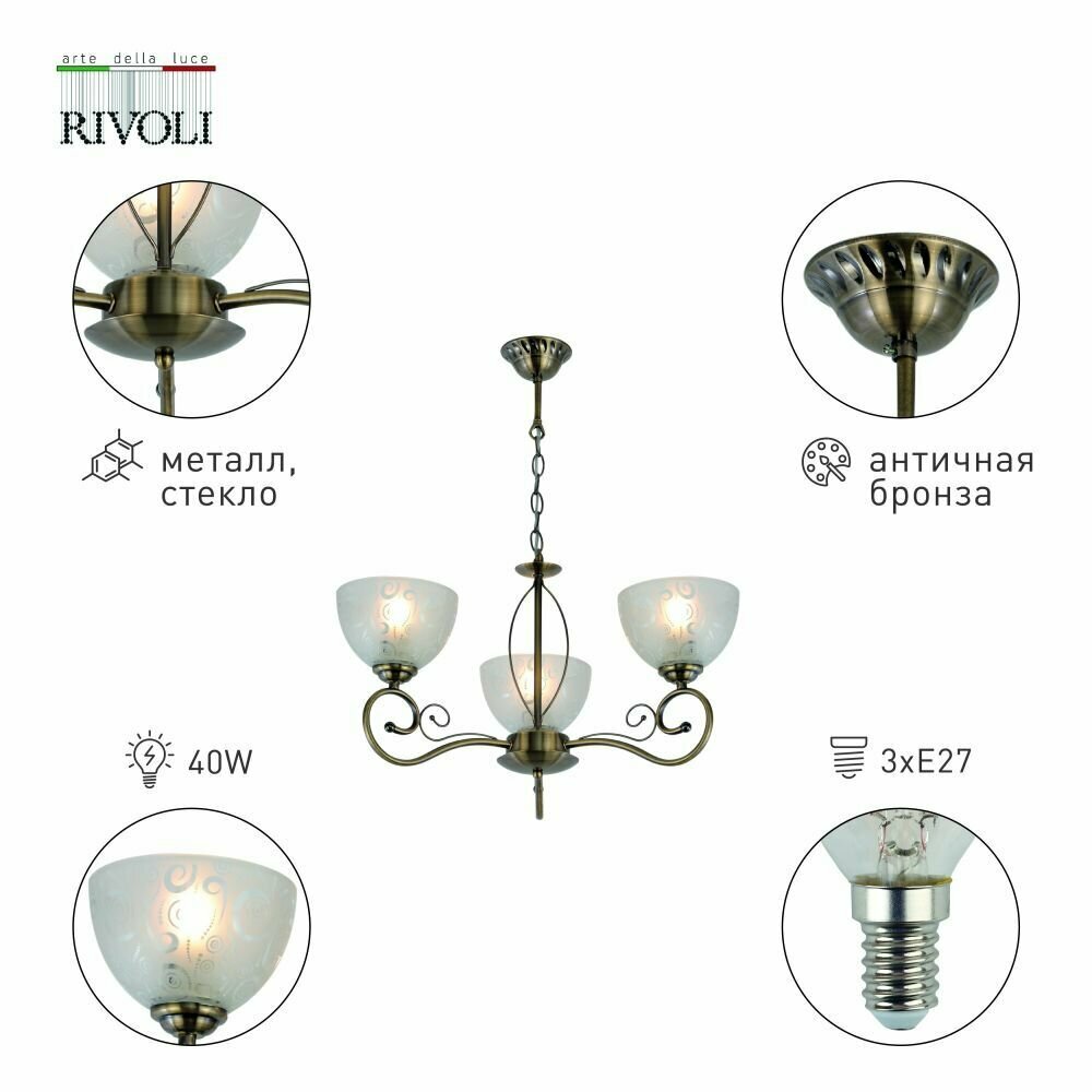 Купить Люстра потолочная Rivoli Loren E27 40 Вт античная бронза, классика