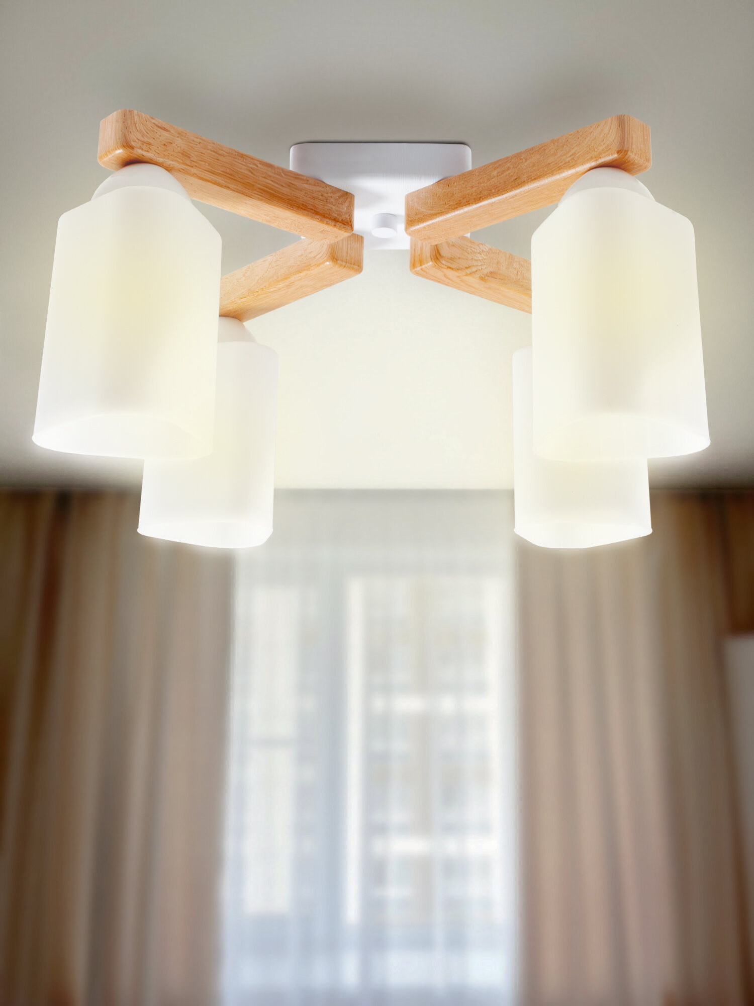 Купить Люстра потолочная "Астра", 4хЕ27х40Вт, белый и натуральный, пластиковые плафоны