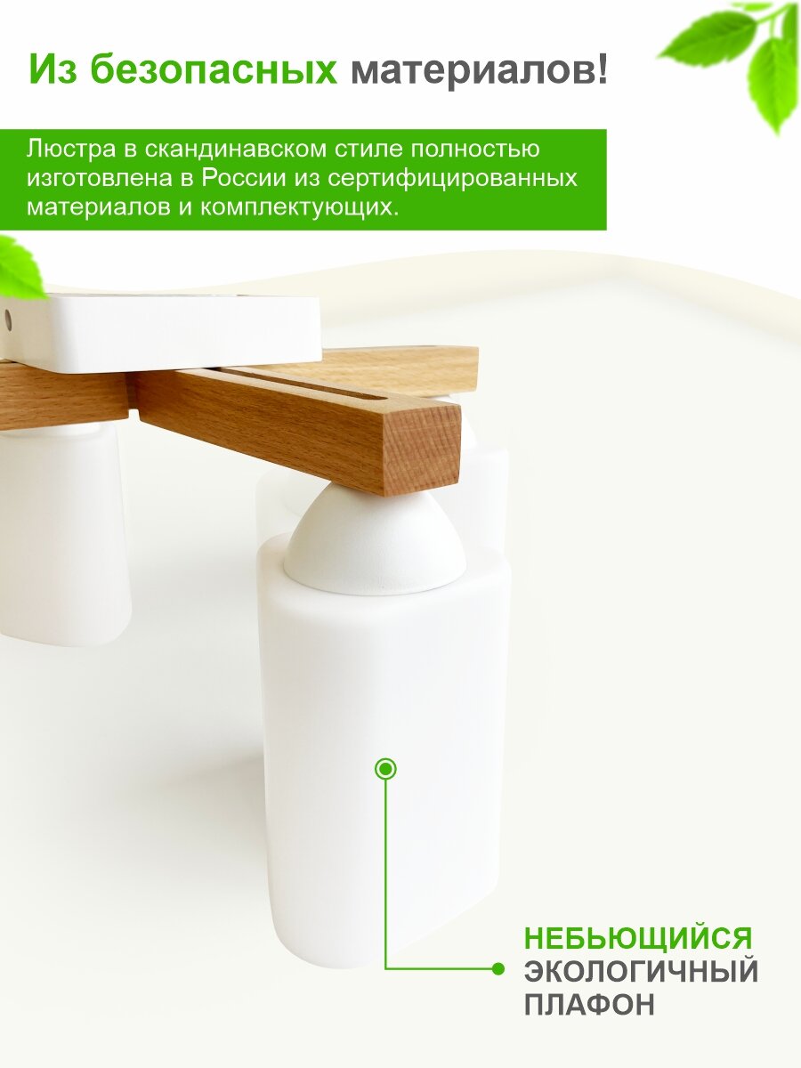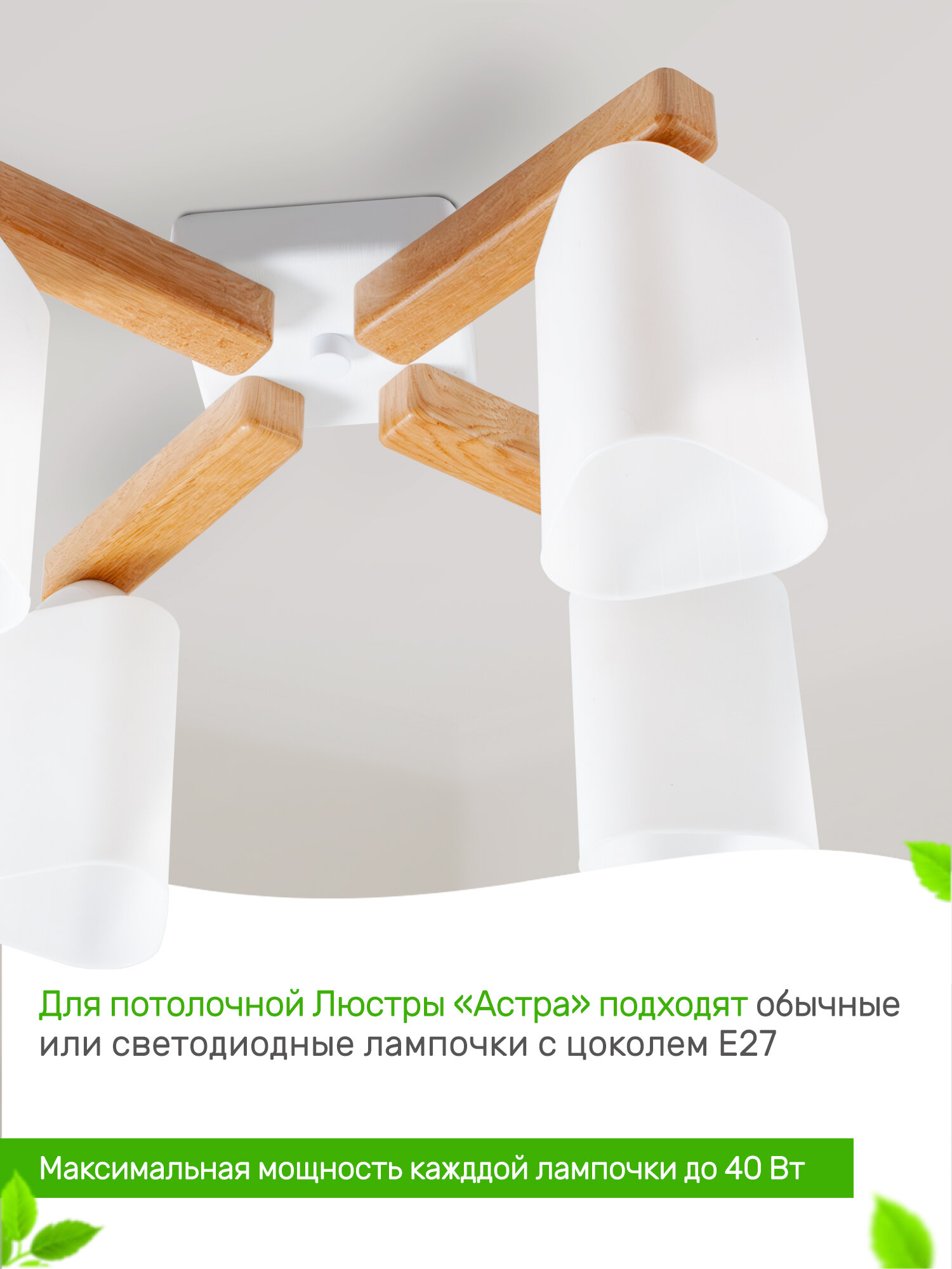 Люстра потолочная "Астра", 4хЕ27х40Вт, белый и натуральный, пластиковые плафоны интересное: