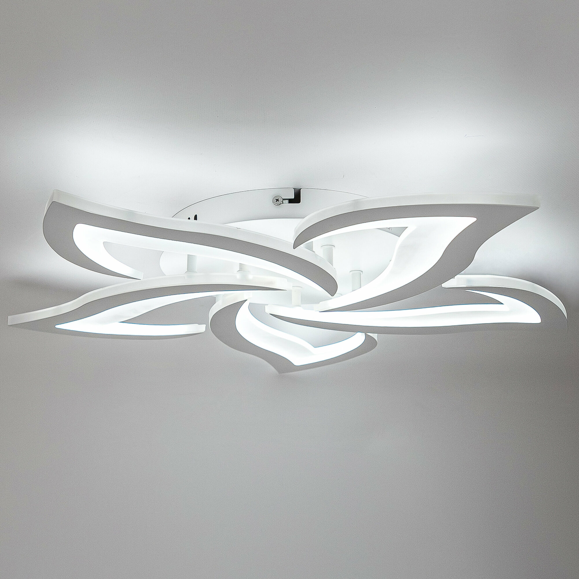 Люстра с пультом светодиодная потолочная 176W, 8 ламп, цветок, большая, белая, LEDCITY