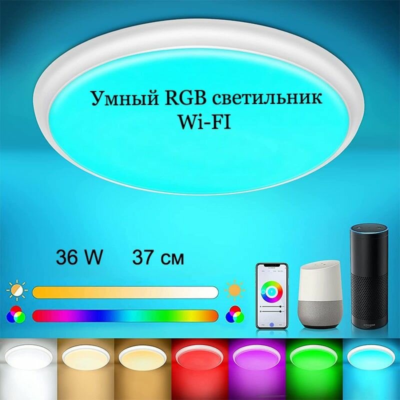 Умный высококачественный RGB светильник, люстра WI fi с пультом, 36 W Яндекс Алиса, Tuya Original интересное: