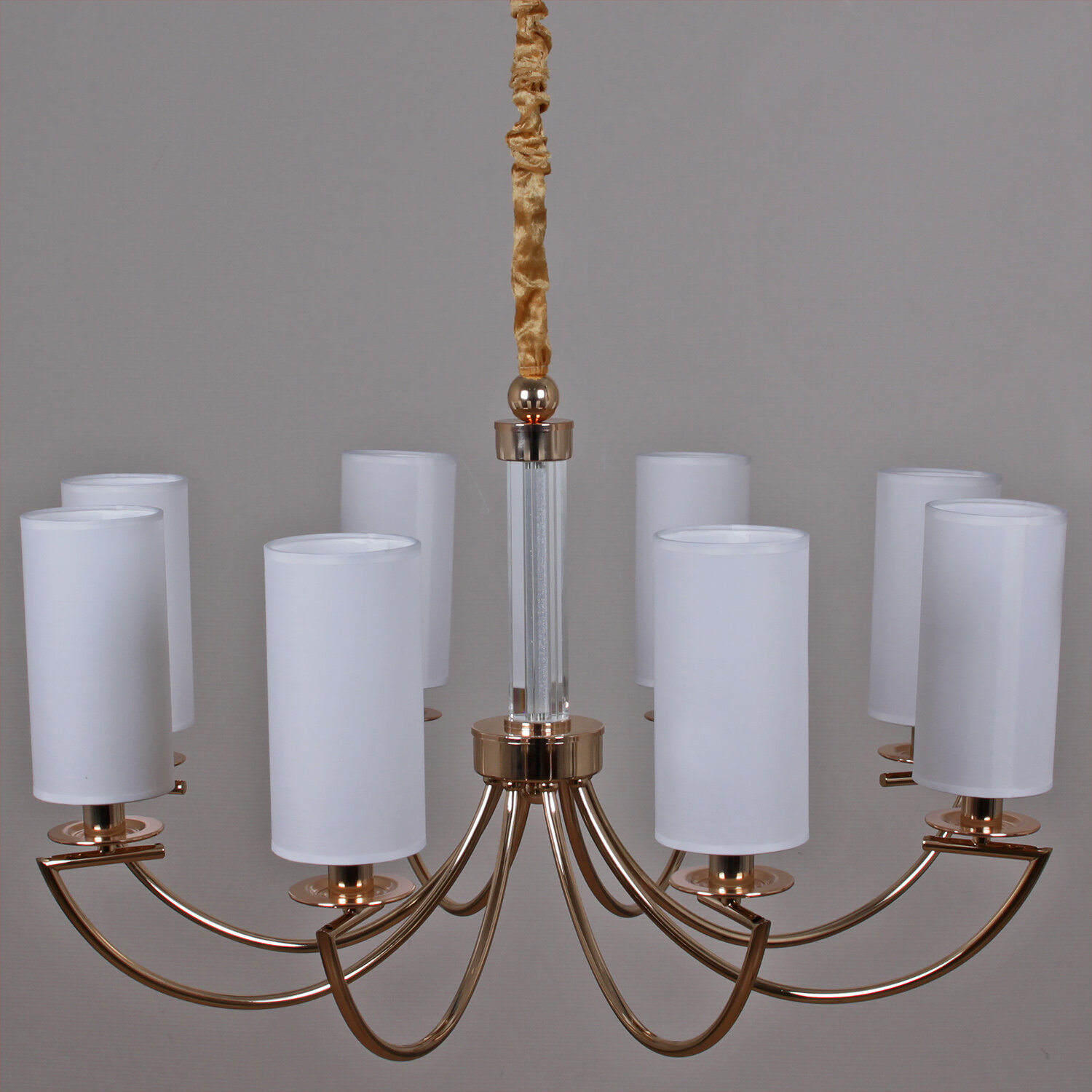 Подвесная люстра Illumico IL6176-8P-27 GD, Накаливания, E14, Ткань/Белый, Металл/Золото, Модерн, В гостиную, На потолок, Конусный, Италия