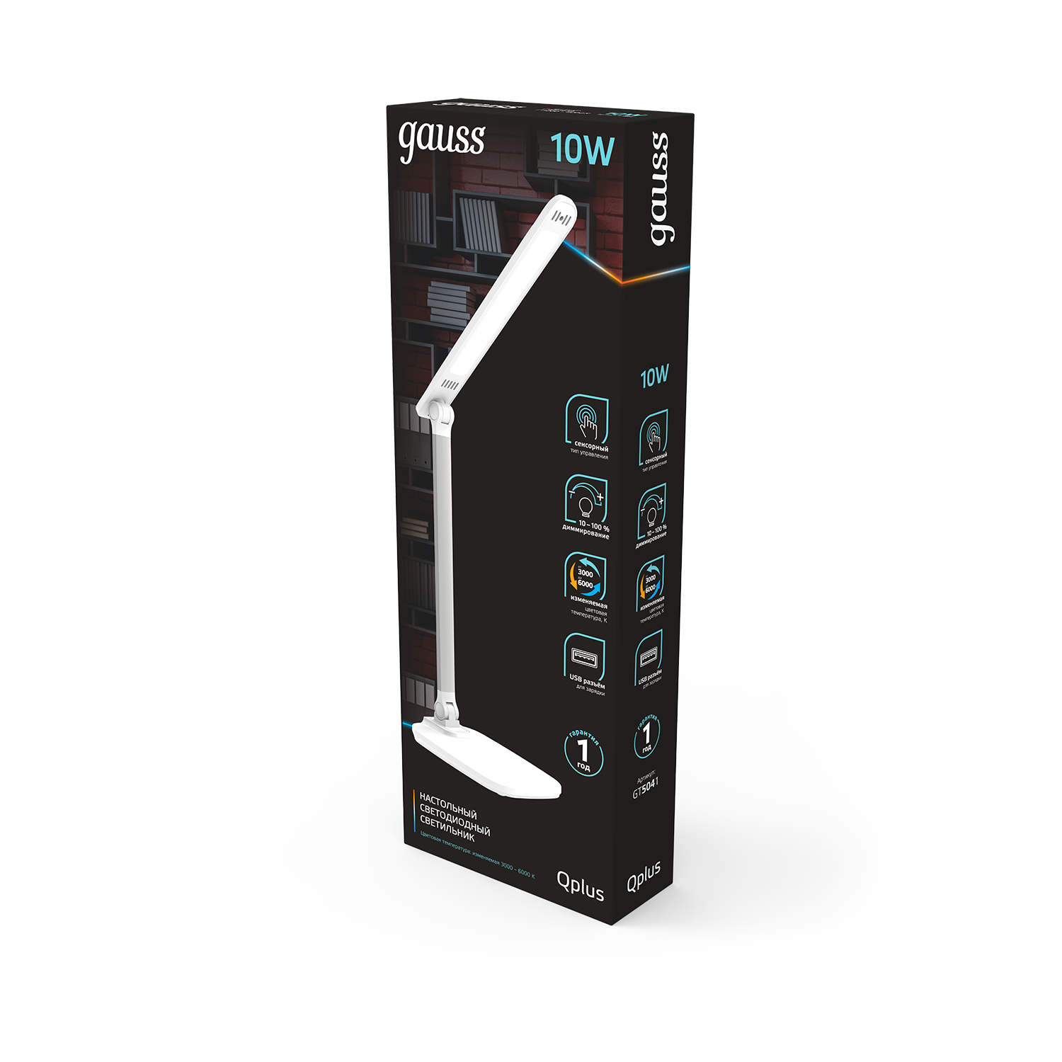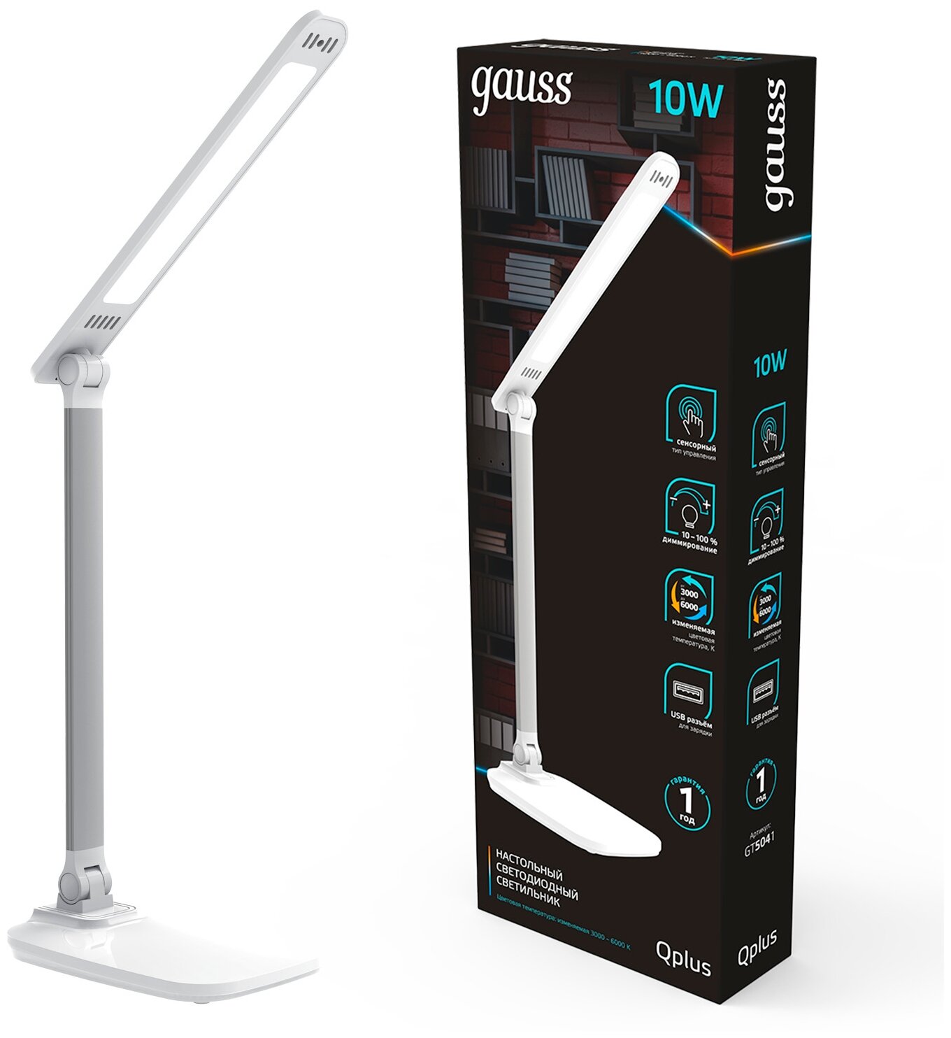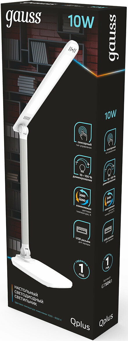 Светильник настольный Gauss Qplus модель GTL504 10W 590lm 3000-6000K 170-265V белый диммируемый USB LED 1/8/16