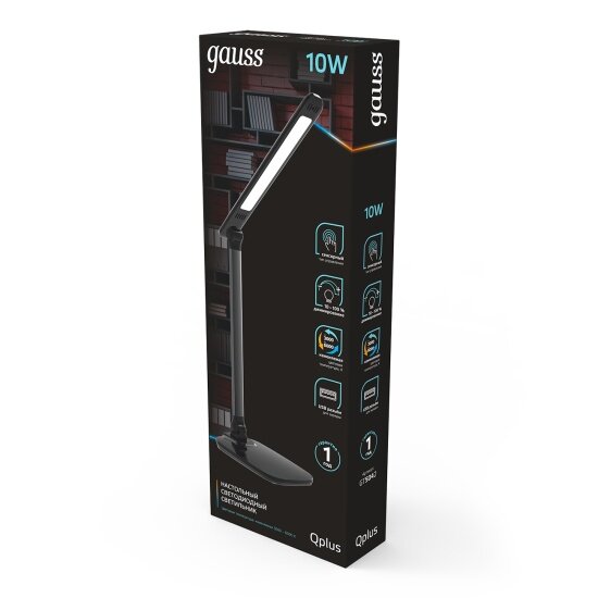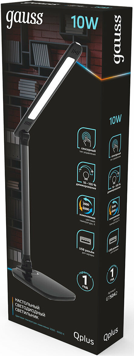 Купить Светильник настольный Gauss Qplus модель GTL504 10W 590lm 3000-6000K 170-265V черный диммируемый USB LED 1/8/16