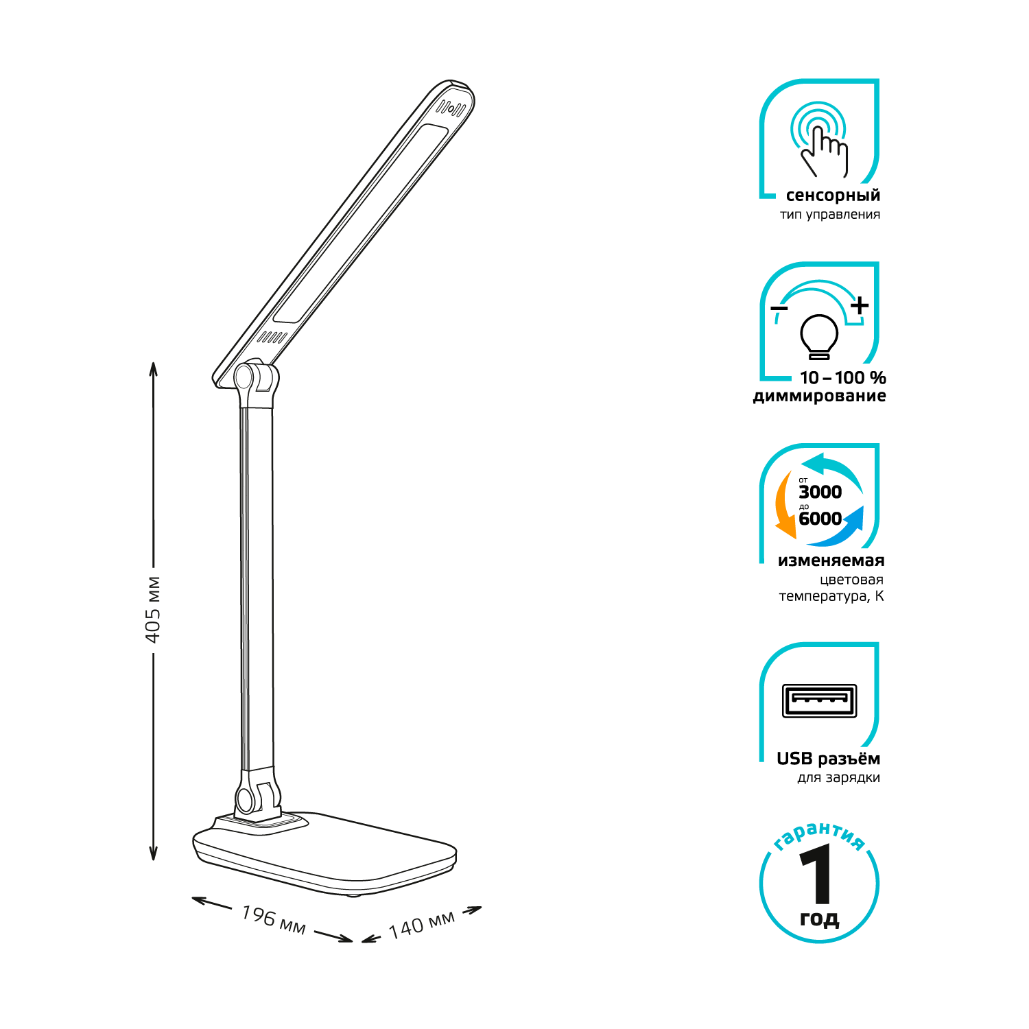 Светильник настольный Gauss Qplus модель GTL504 10W 590lm 3000-6000K 170-265V белый диммируемый USB LED 1/8/16
