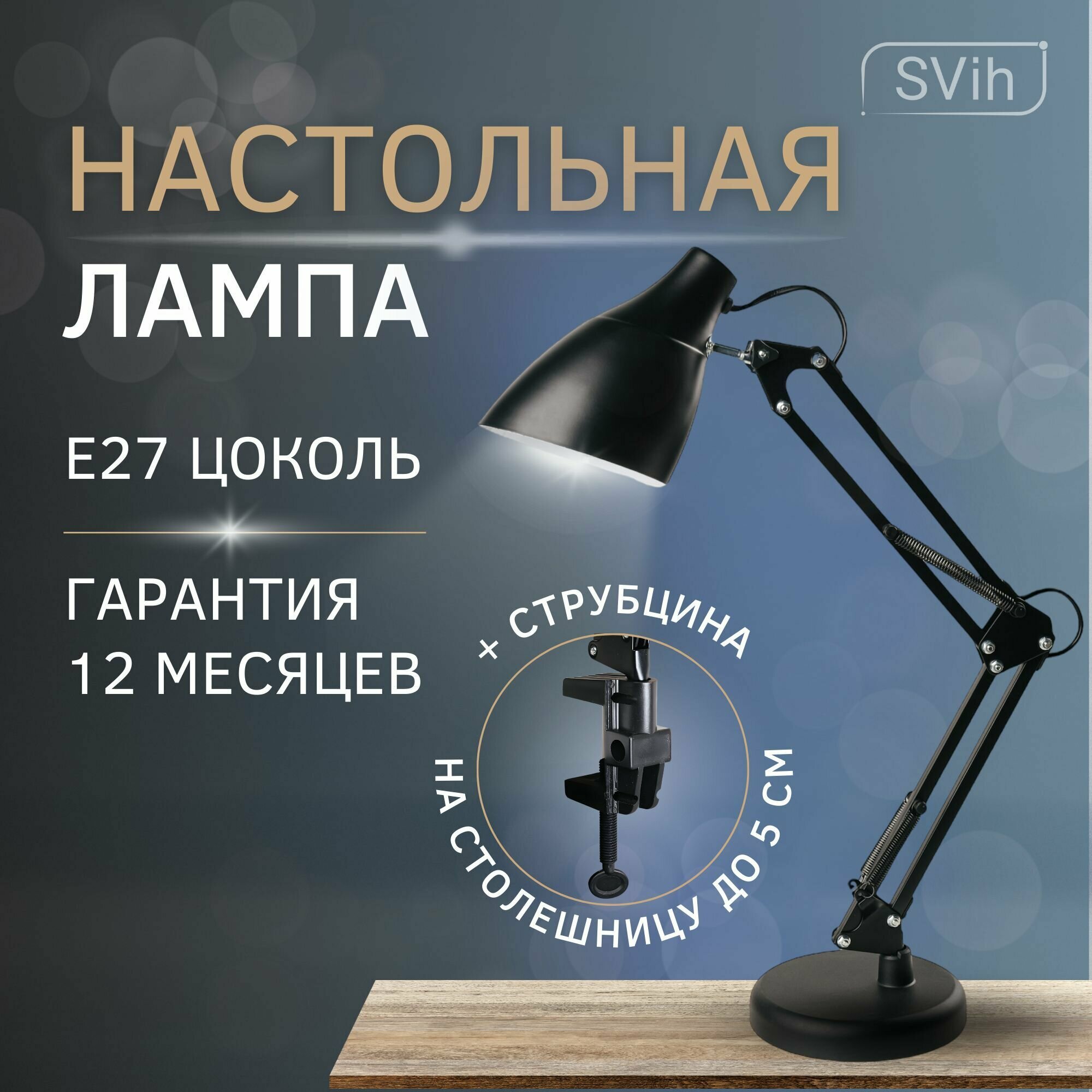 Настольная лампа SVih, E27, складная, на струбцине, черный, 60W