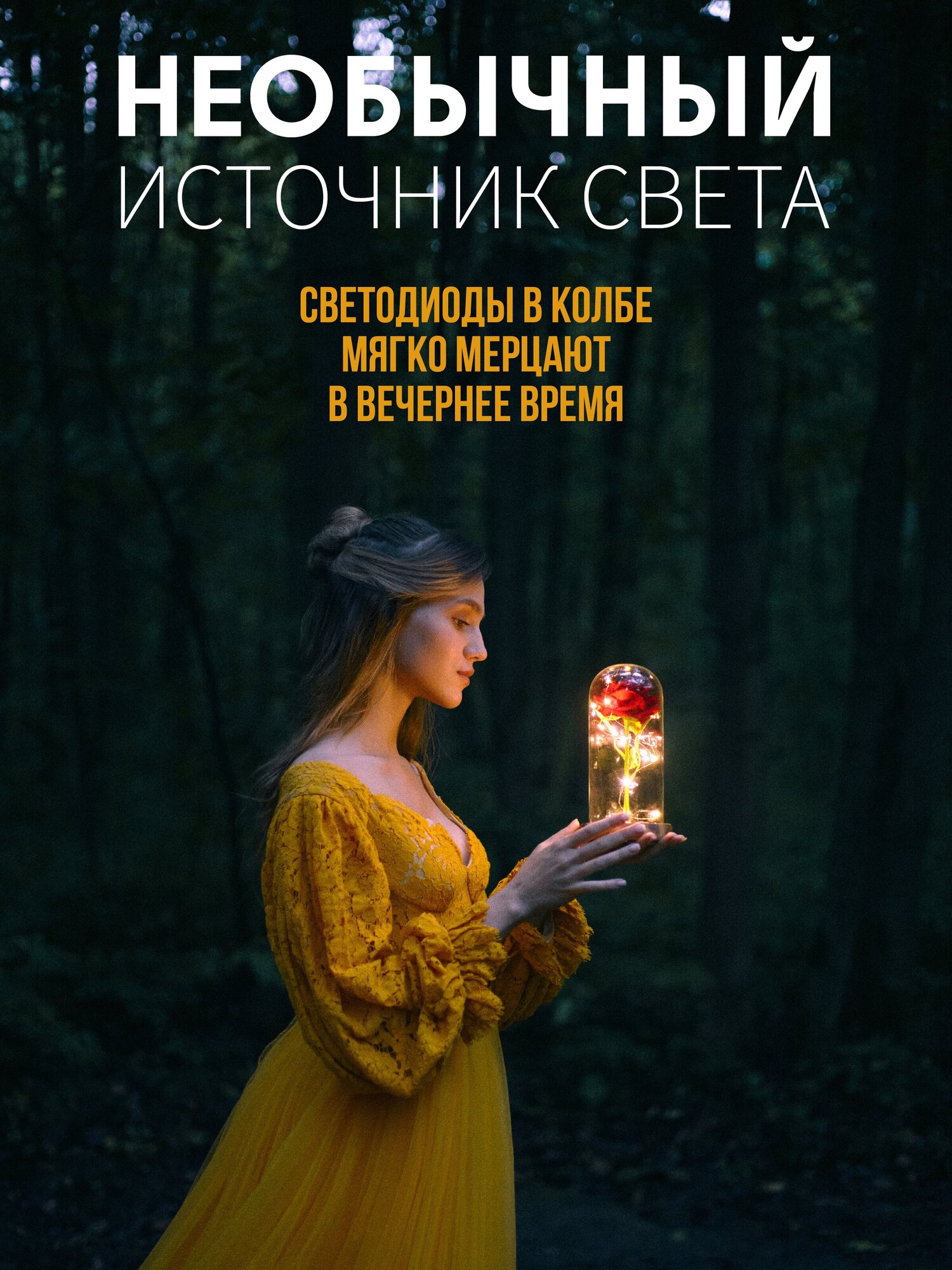 Ночник роза в колбе искусственная с подсветкой Иллюметик, светильник светодиодный, роза из Красавицы и чудовища в подарок. Вечная роза интересное: