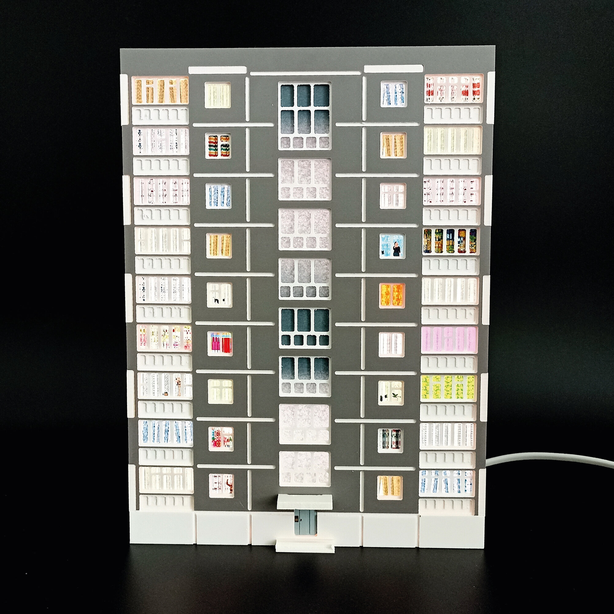 Ночник декоративный "Домик - панелька 9 этажей" мрамор цветной