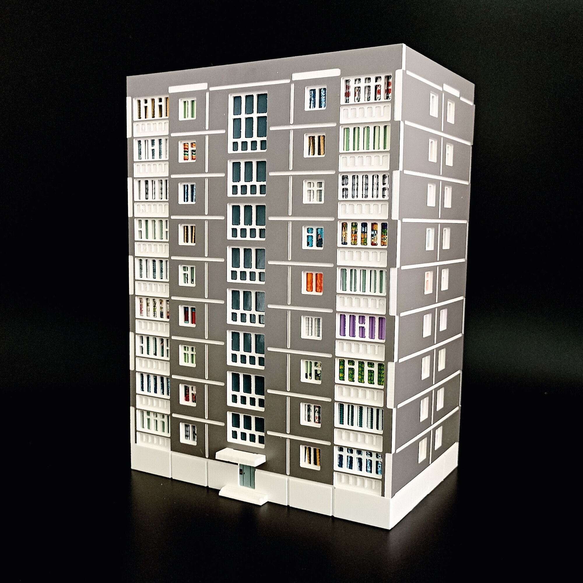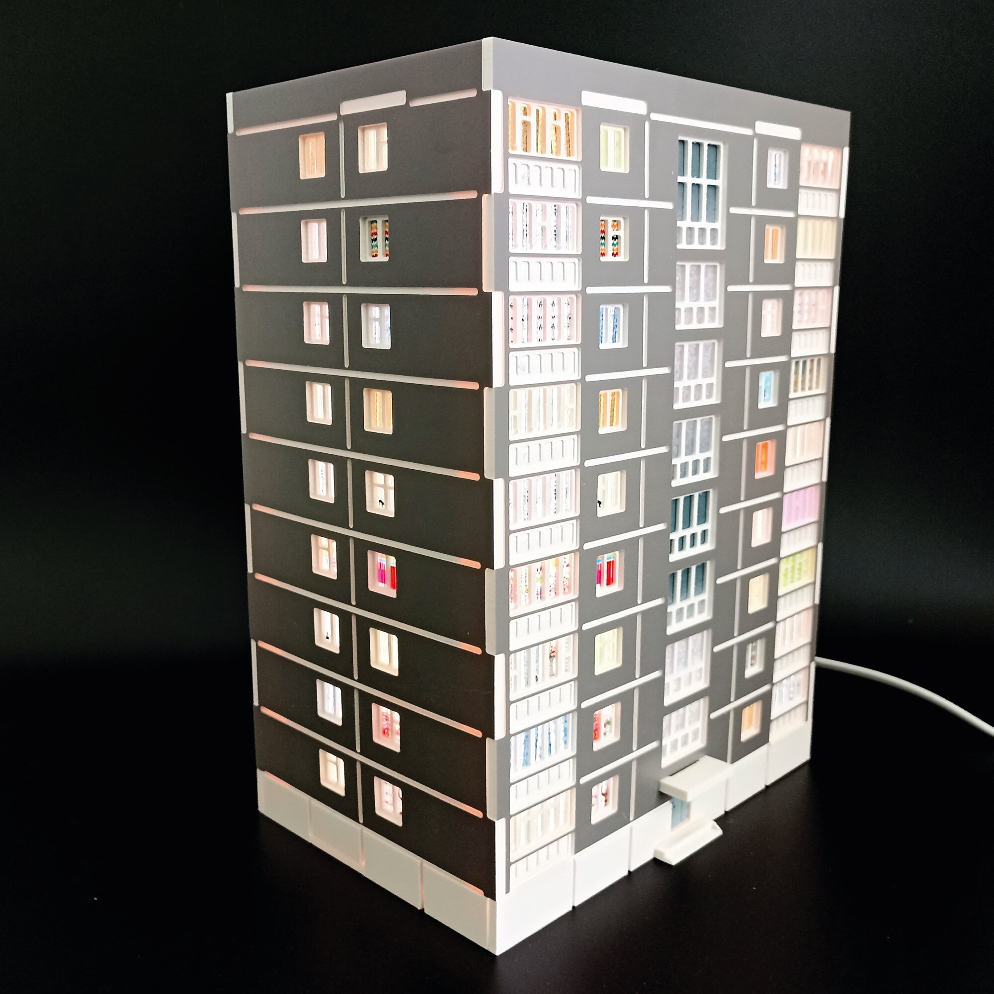 Ночник декоративный "Домик - панелька 9 этажей" мрамор серый
